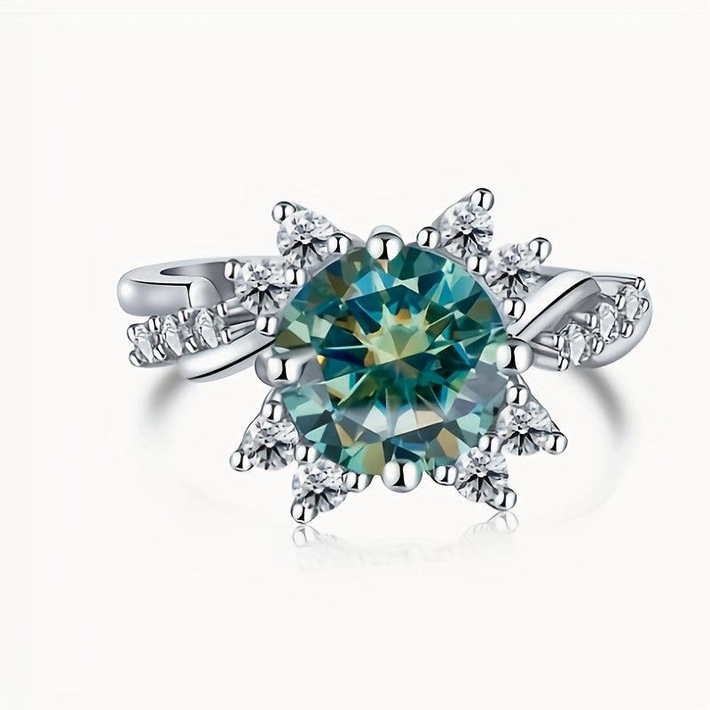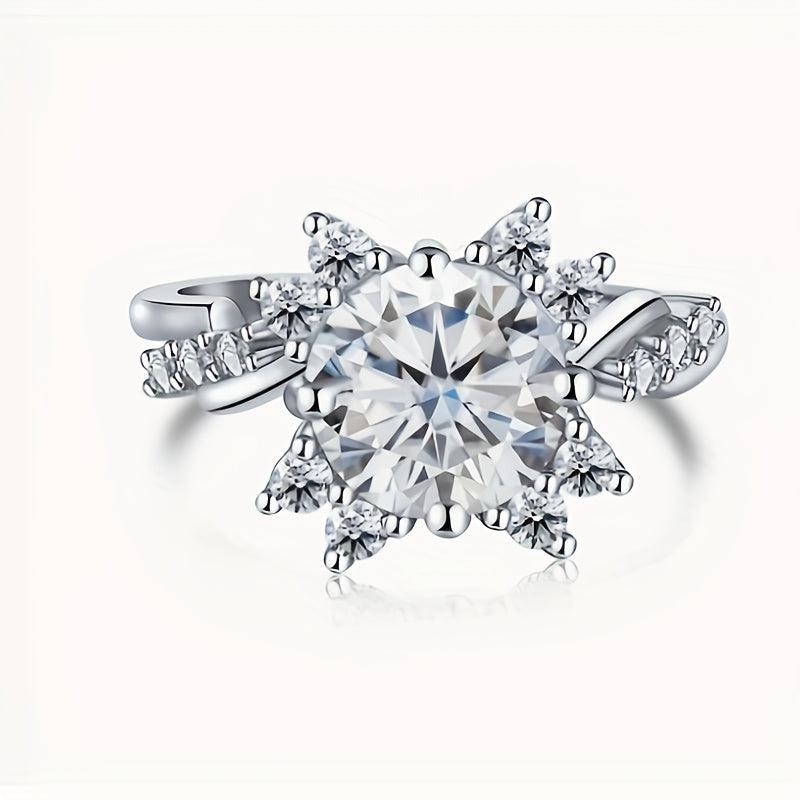 Beautiful 2CT moissanite engagement ring crafted in 925 sterling silver. Features a D color VVS1 clarity stone in a four prong setting, perfect for anniversaries and weddings.