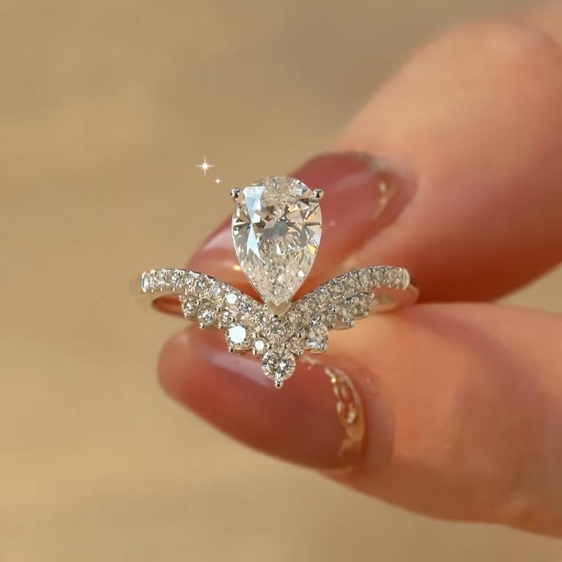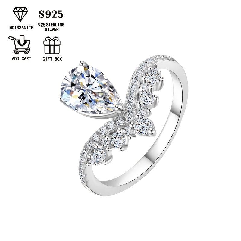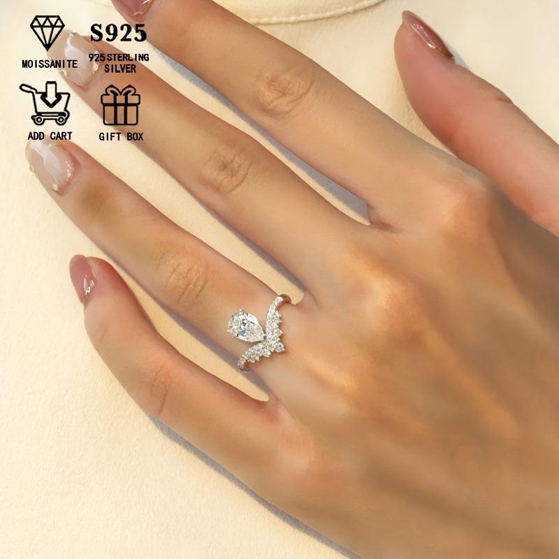 Stunning 2ct pear shaped moissanite ring made of hypoallergenic 925 sterling silver. Ideal for anniversary and wedding gifts.