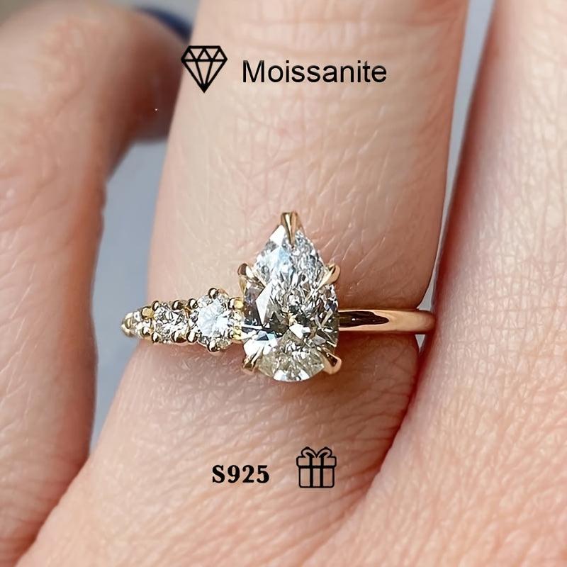 This beautiful 2ct pear moissanite ring is made of low allergy S925 silver and is perfect for women and men. It makes a great anniversary gift for your wife.