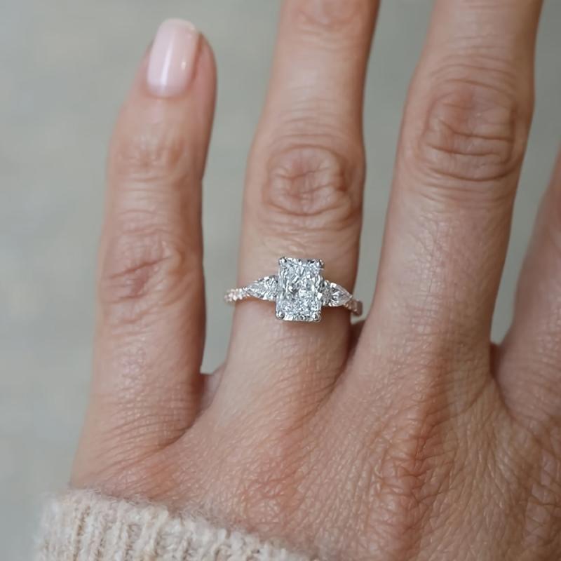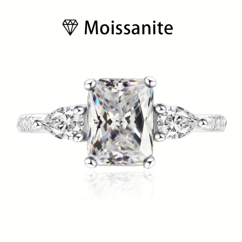 Elegant and stunning 2ct rectangular Moissanite engagement ring crafted in S925 silver with a beautiful pearlescent edge. Perfect for weddings and gift giving.