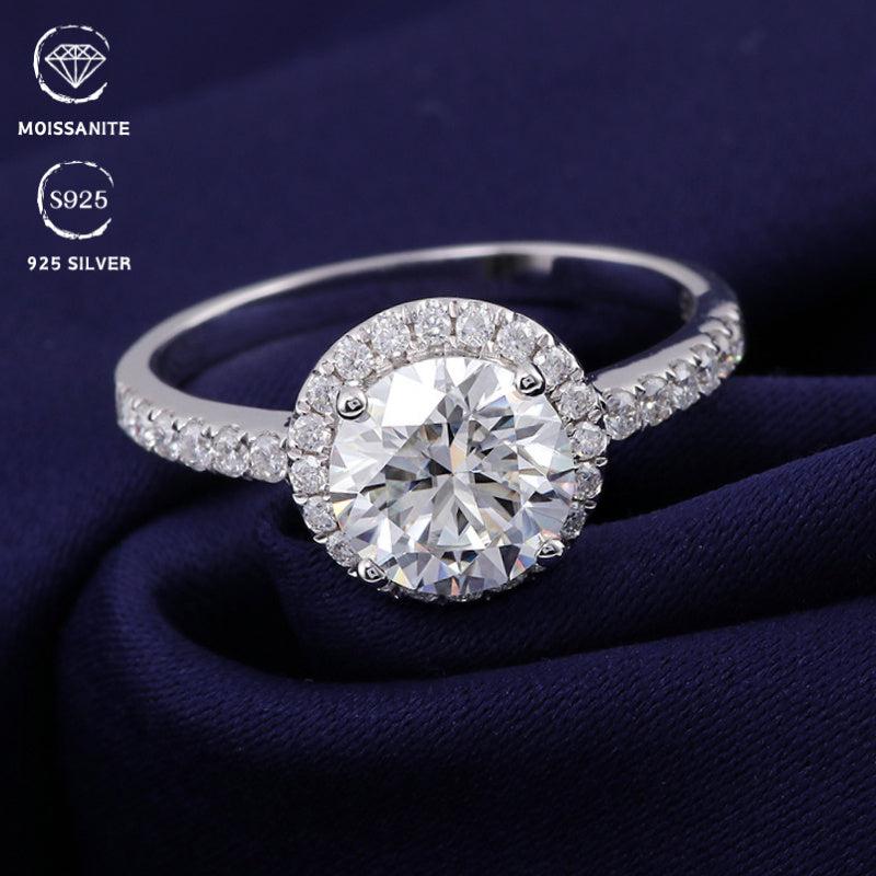 Add a touch of elegance to your outfit with this stunning 2 carat round moissanite ring. Perfect for parties, banquets, music festivals, and birthday celebrations.