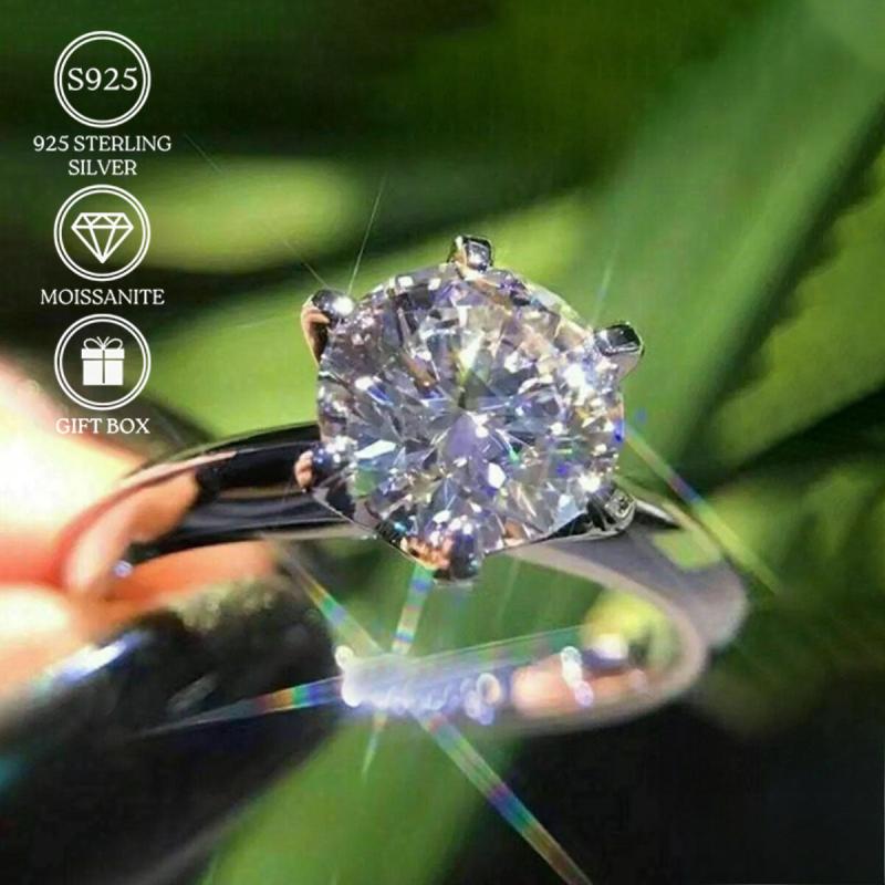 2Ct Round Moissanite Ring, 925 Sterling Silver, Ideal Birthday Gift