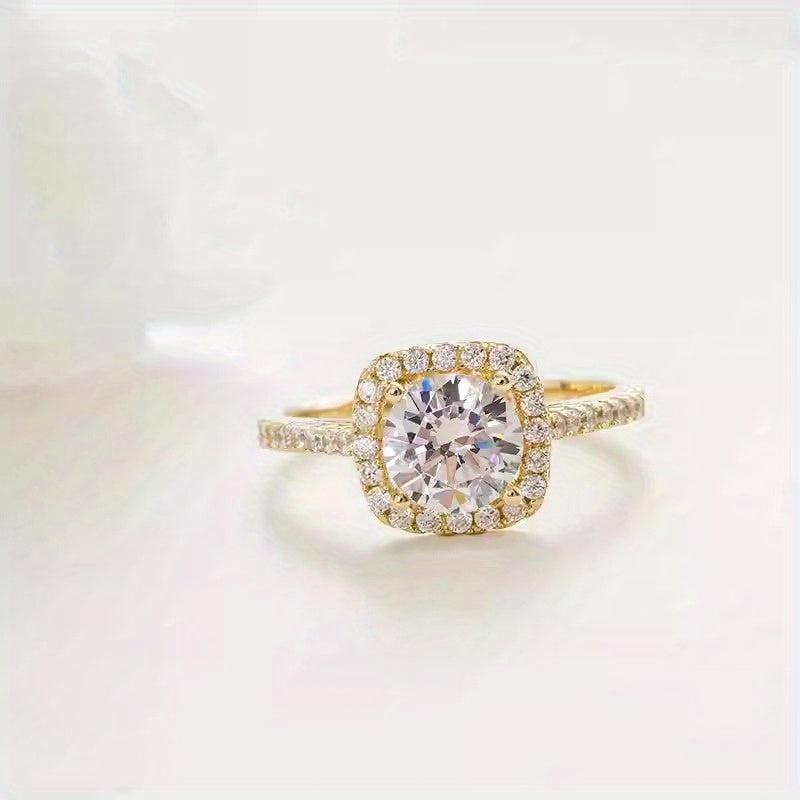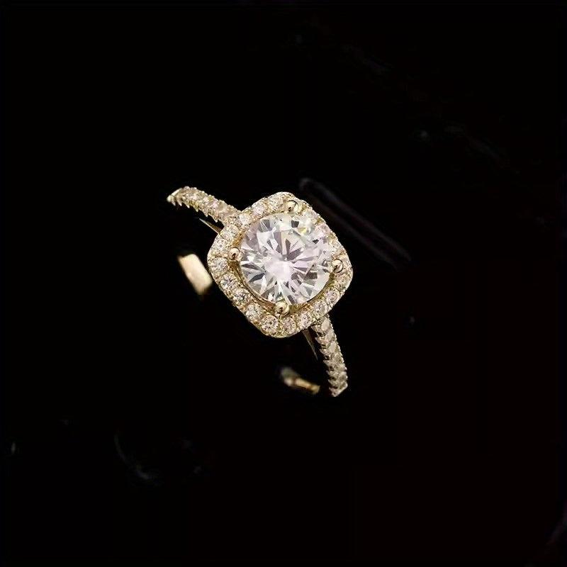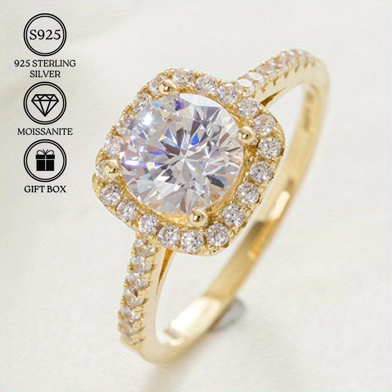 This stylish ring features 18K golden plated 925 silver with a sparkling moissanite stone. Perfect for couples with rural Chinese style. Ideal for vacation or special occasions.