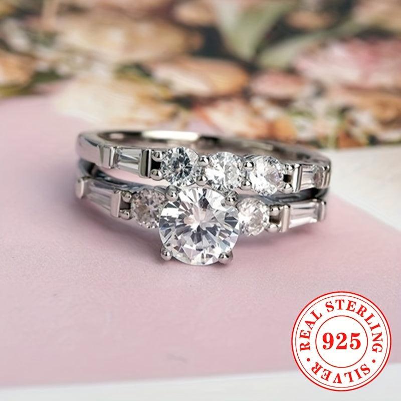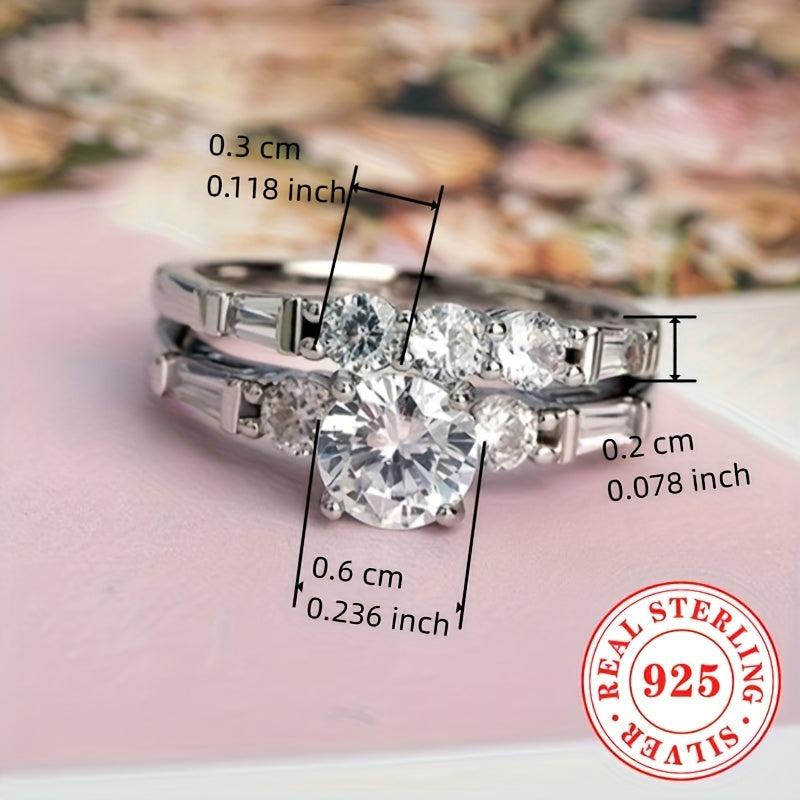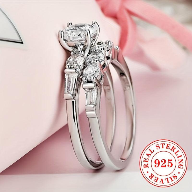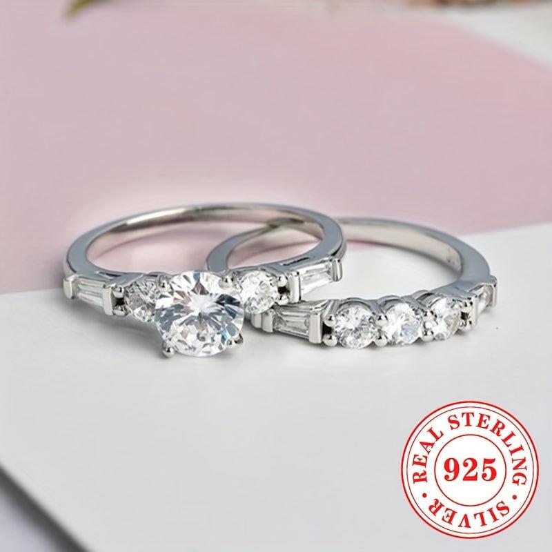 Elegant set of engagement rings with synthetic zirconia stones, perfect for weddings and proposals. Crafted from pure S925 silver for a luxurious look.