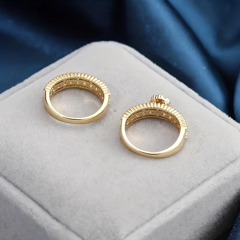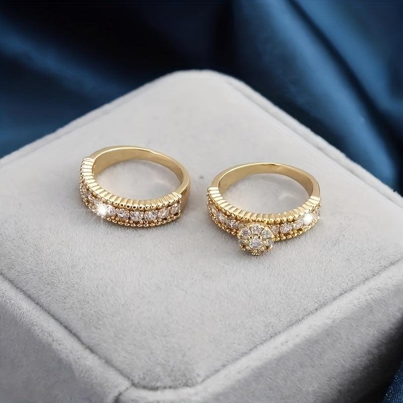 Elegant ring set featuring sparkling zirconia, perfect for women's engagement gift or wedding. Classic design adds a touch of glamour to any outfit.