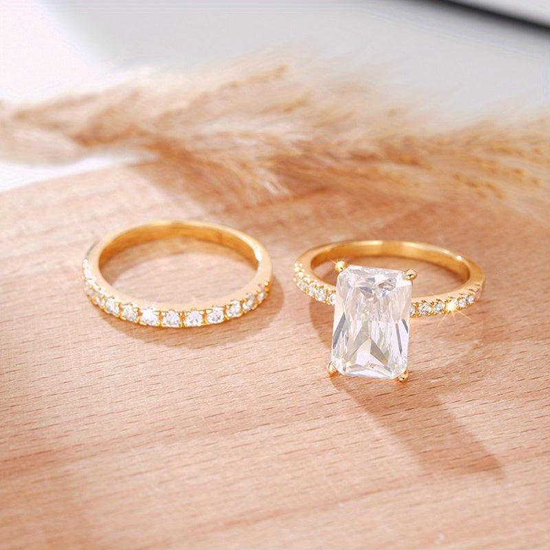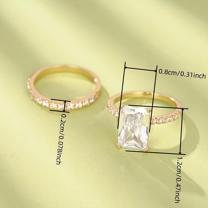 Add a touch of glamour to your outfit with this stunning ring set featuring sparkling CZ stones and a yellow golden plated finish. Perfect for everyday wear or special occasions.