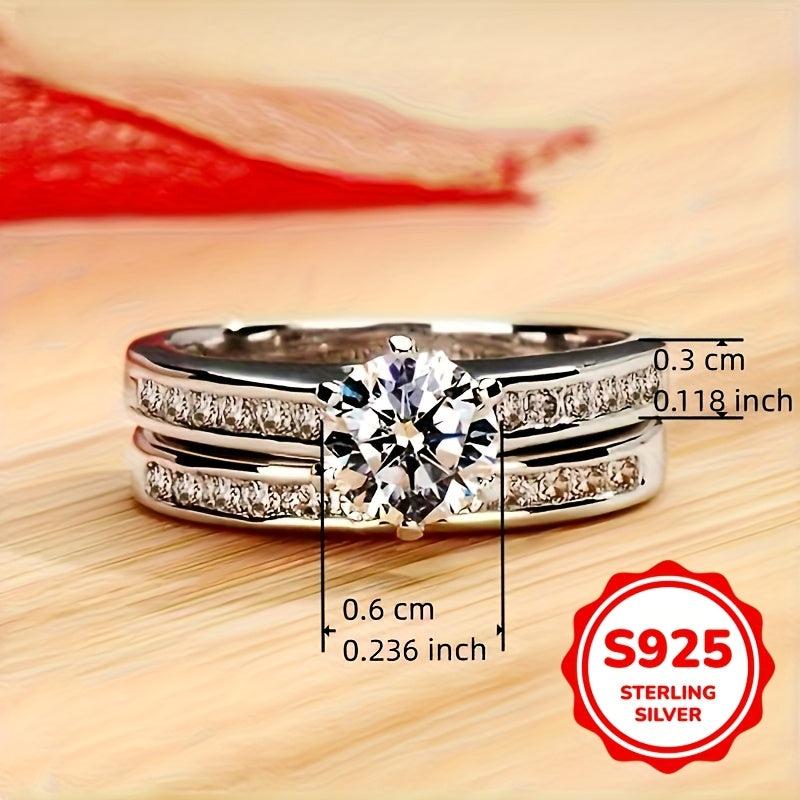 This elegant wedding ring set features a classic design with a single cubic zirconia stone set in a 6-prong setting. Made of high-quality 925 sterling silver, this set is perfect for engagement and marriage, making it a thoughtful gift for your loved one.