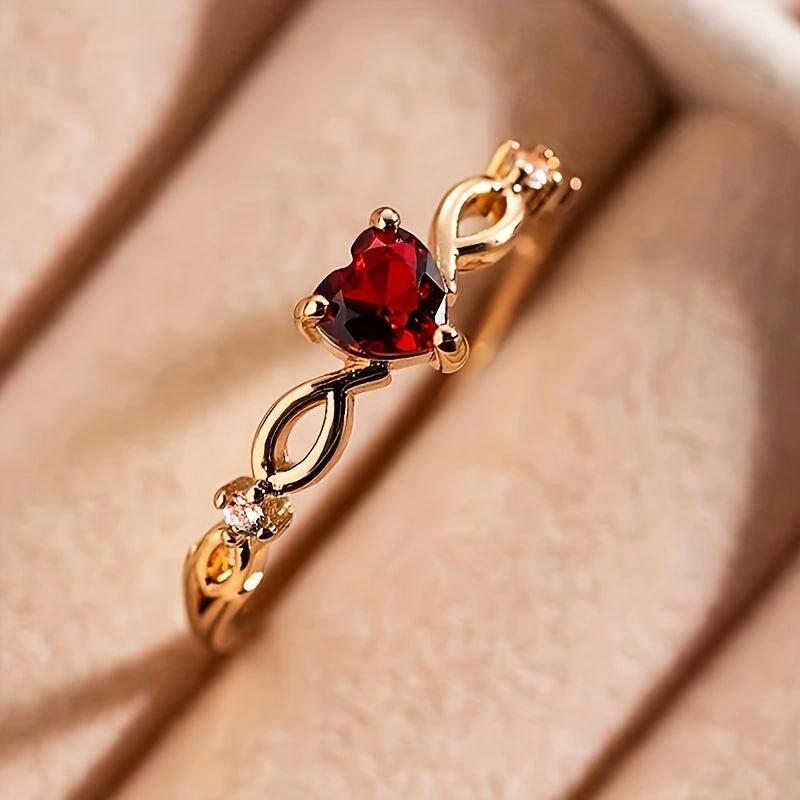 This classic hollow heart ring features a synthetic garnet set in a prong setting. Perfect for anniversary, Valentine's Day, or wedding jewelry for women.