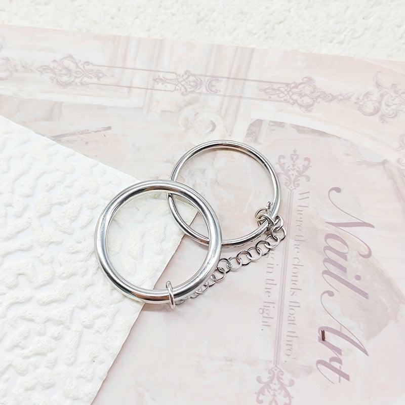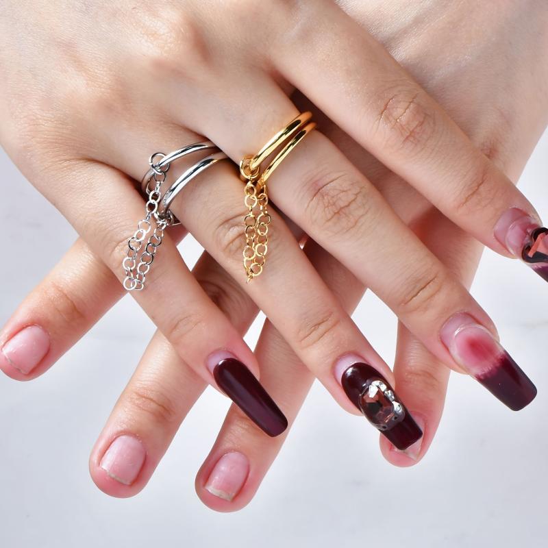 Elevate your style with this set of 3 stackable rings made of durable 304 stainless steel. Featuring a unique blocked design with double hoop and chain accents, these rings are perfect for everyday and party wear. Their versatile stackable design allows you to mix and match with other rings for a customized look.