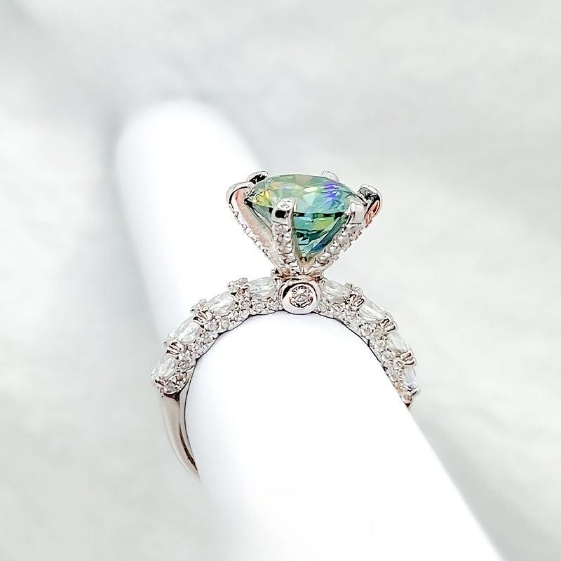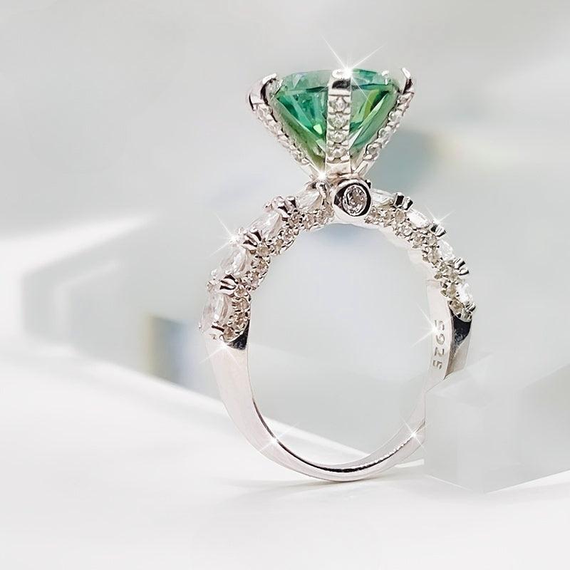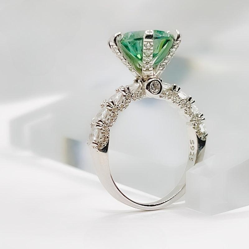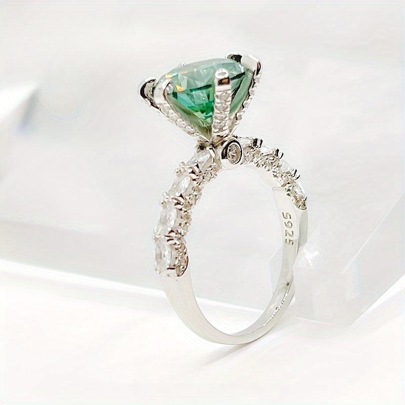 This stunning 3 carat green moissanite ring is crafted in S925 sterling silver. Perfect for men and women, it makes a stylish and elegant gift.