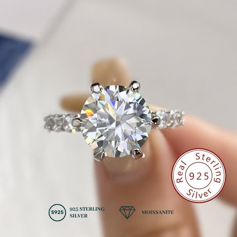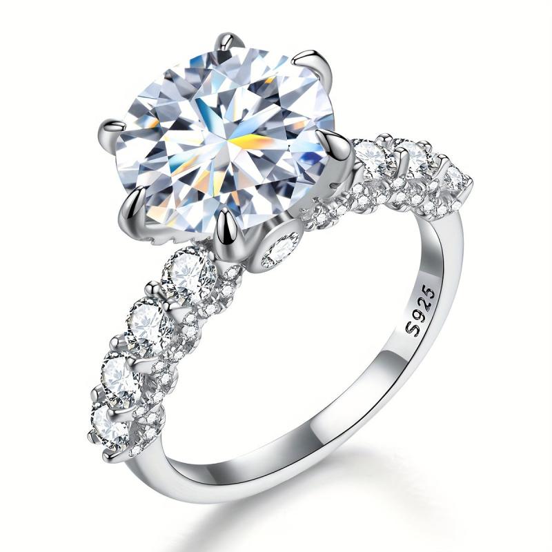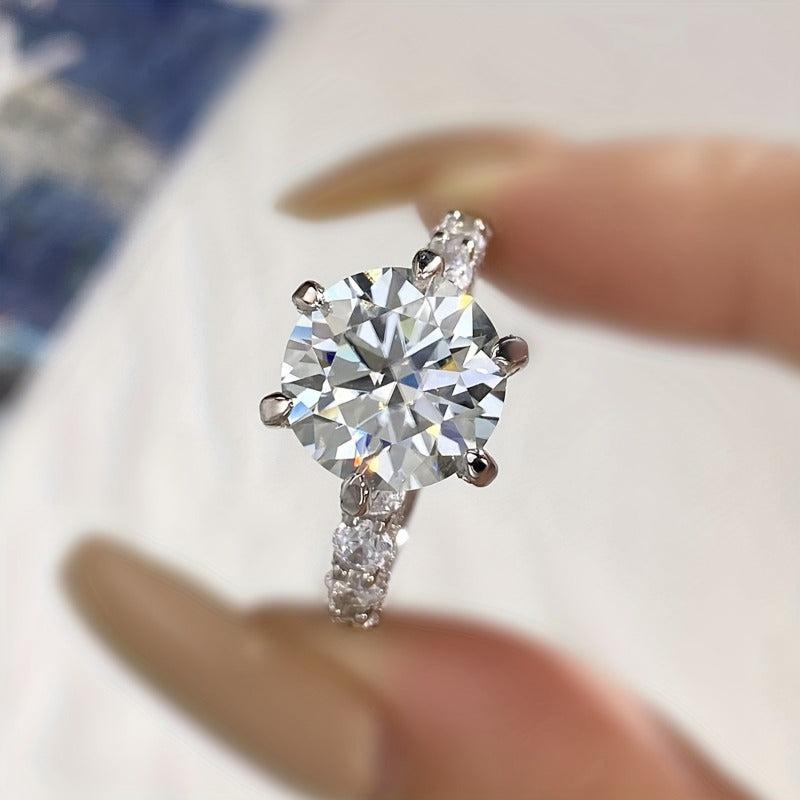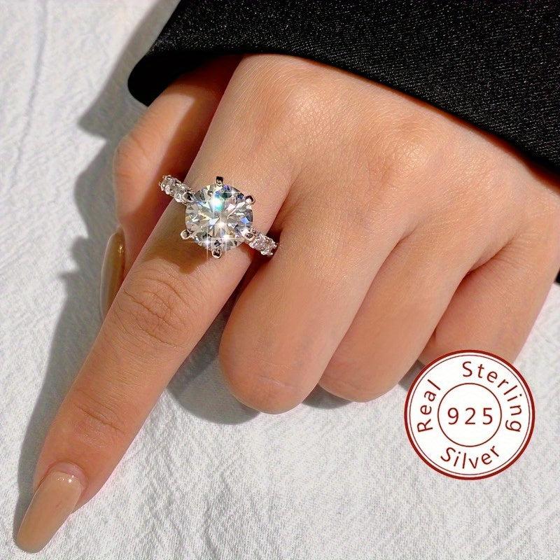 This stunning 925 sterling silver ring features a 3ct moissanite stone, perfect for engagements, weddings, or evening parties.