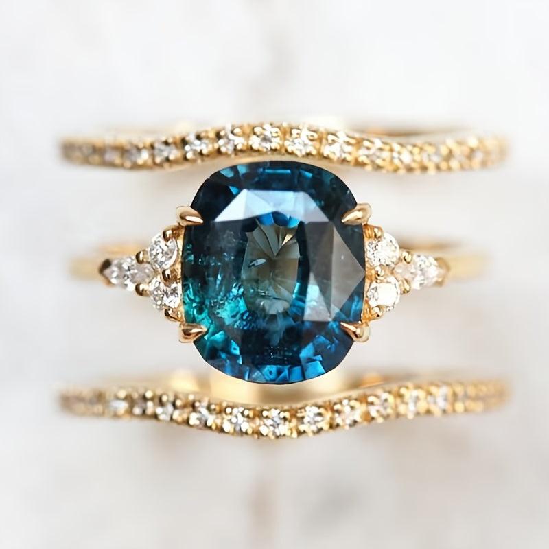 Add a touch of boho elegance to your look with this 3-piece ring set featuring deep sea synthetic zirconia. Perfect for daily wear or vacation occasions, this set makes an ideal gift for mothers.