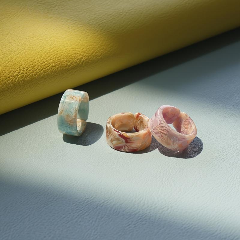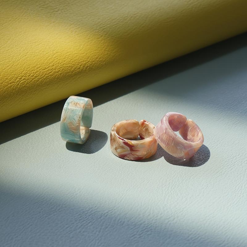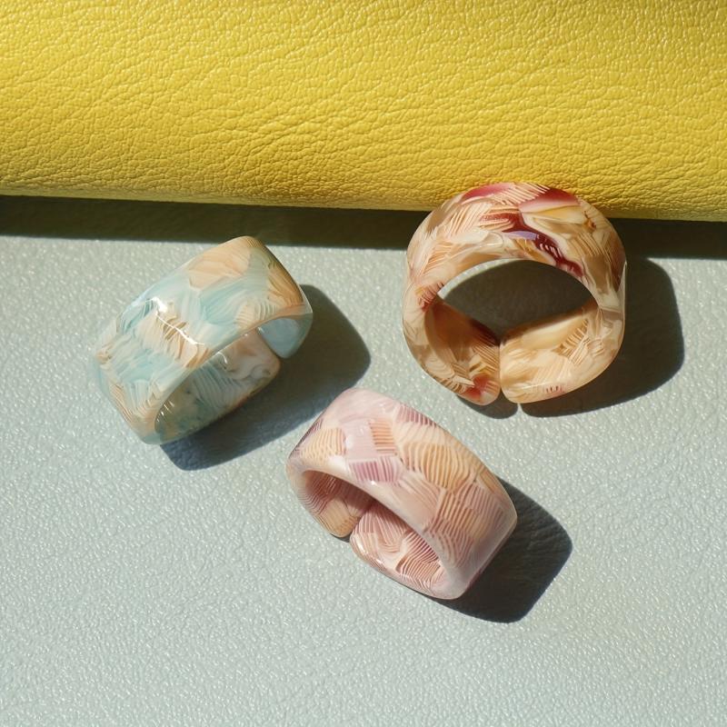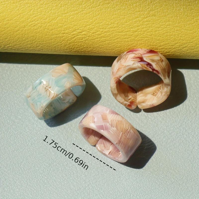 Add a pop of color to your vacation or party outfits with this set of 3 retro-style acrylic rings. Stand out with these vibrant and stylish rings that are perfect for any fun occasion.