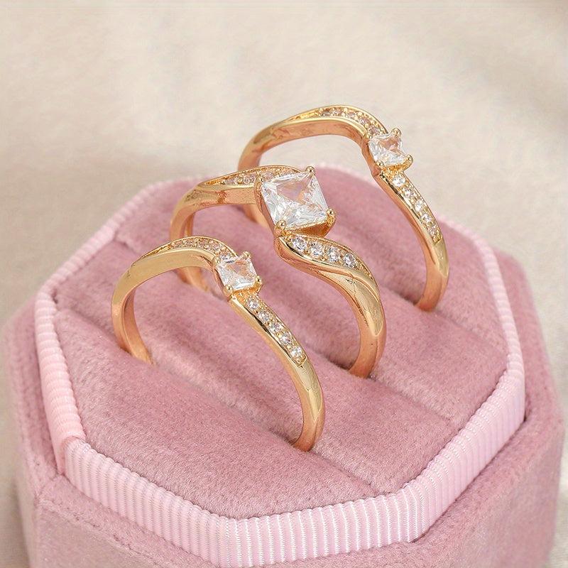 Add a touch of elegance to your look with this 3pcs CZ ring set, featuring shimmering cubic zirconia stones. Perfect for weddings, Christmas, and New Year celebrations.
