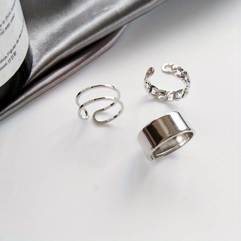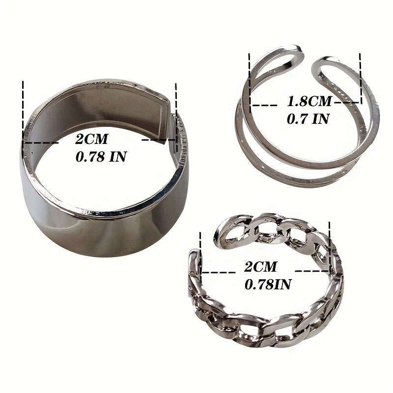 This set includes 3 stylish hip hop rings for men. They are open adjustable joint rings suitable for unisex wear.