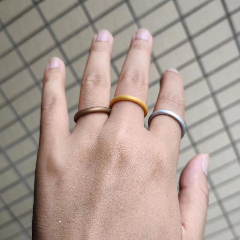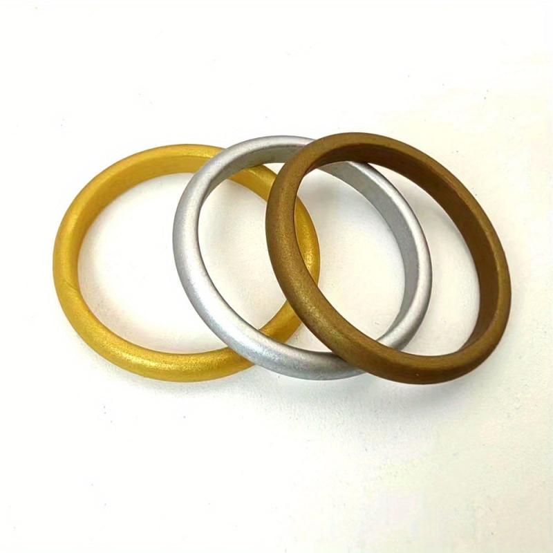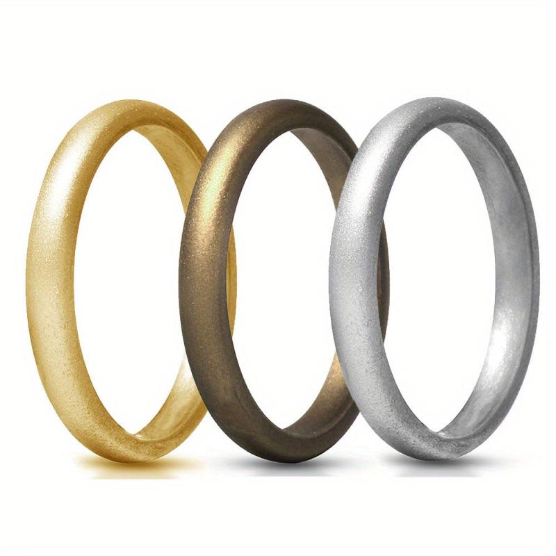 This 3pcs set of silicone rings is perfect for women who love running and outdoor activities. The rings are comfortable, durable, and ideal for daily wear. They are a sporty accessory that comes in golden and silver colors.