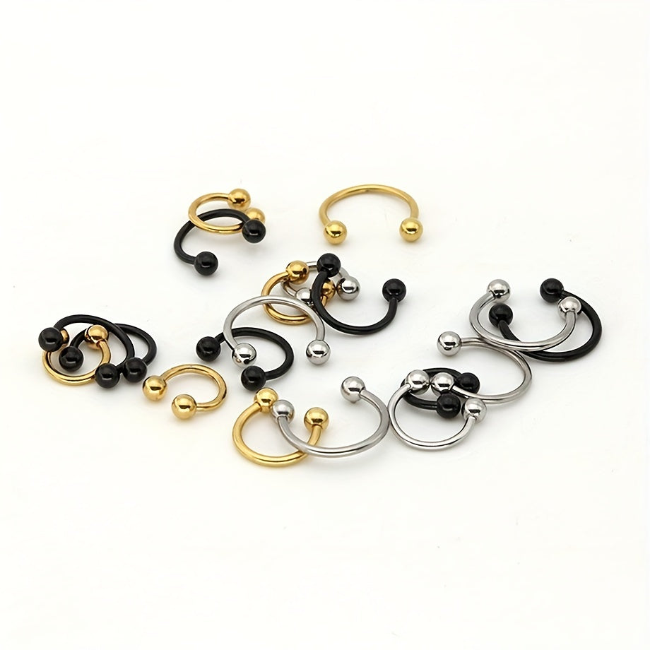 Set of 3 stainless steel horseshoe non-piercing nose rings, perfect for men. Easy to wear and comfortable.