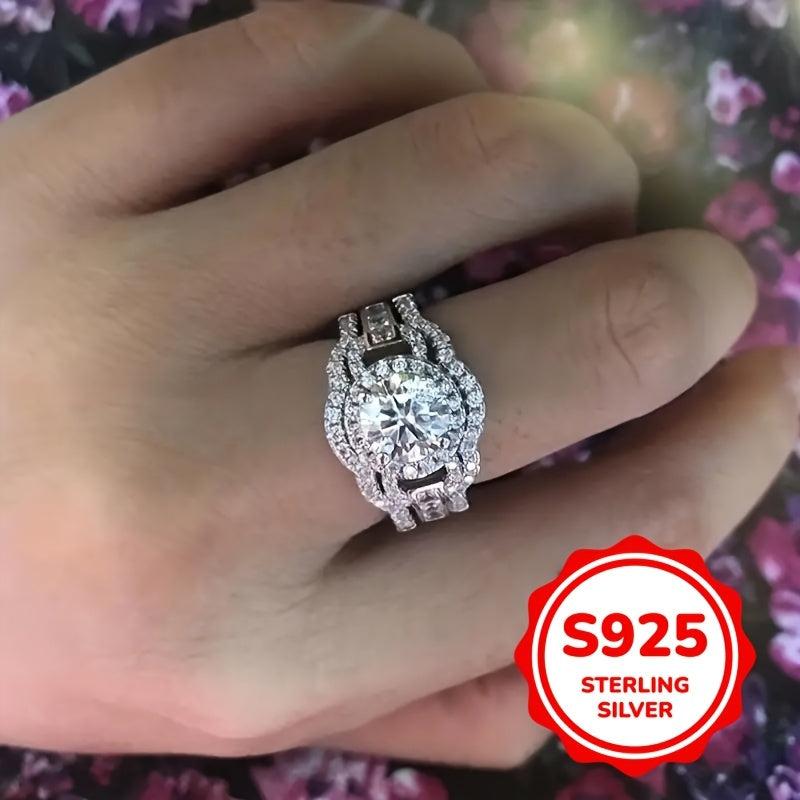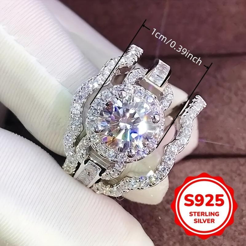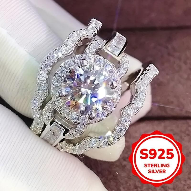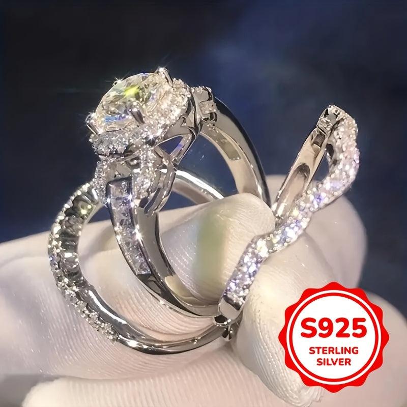 These stunning wedding rings feature synthetic zirconia stones set in 925 sterling silver, perfect for women. The set includes an engagement ring and two additional rings, ideal for special occasions or everyday wear.