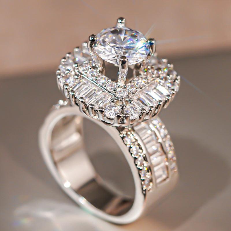 A stunning round zirconia ring perfect for proposals, banquets, weddings, parties, vacations, and daily wear.