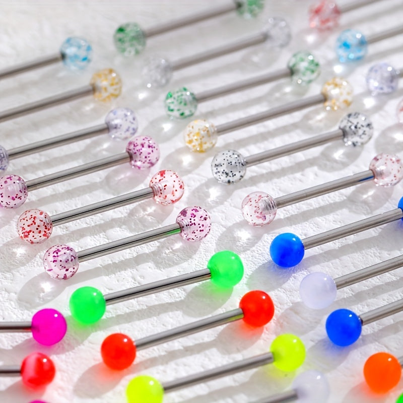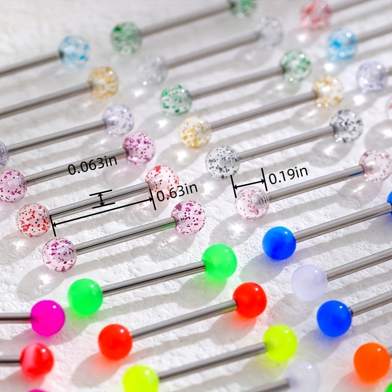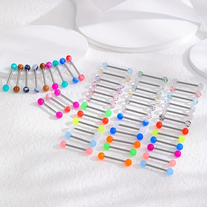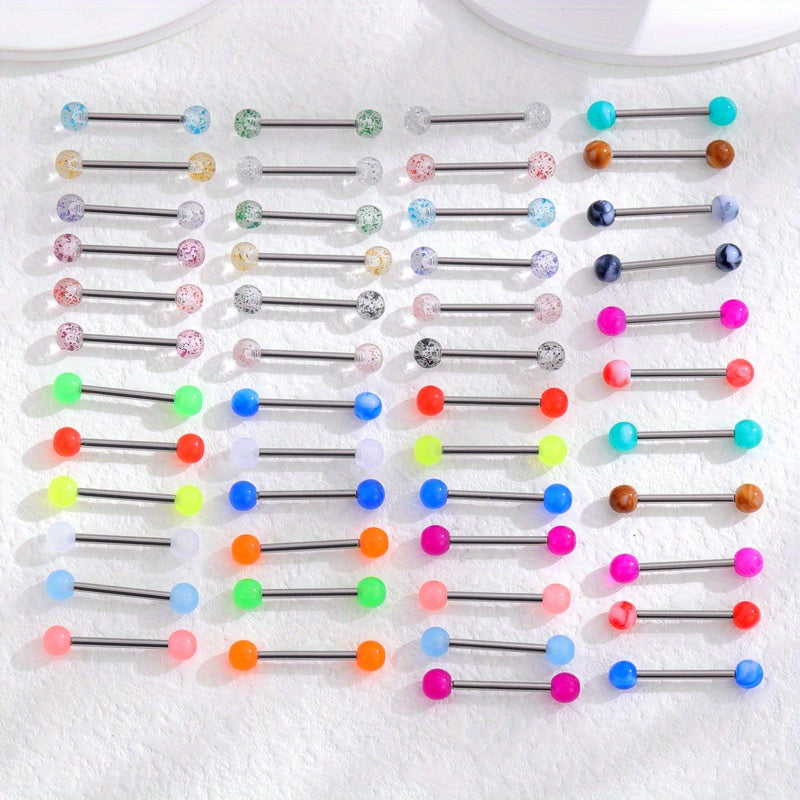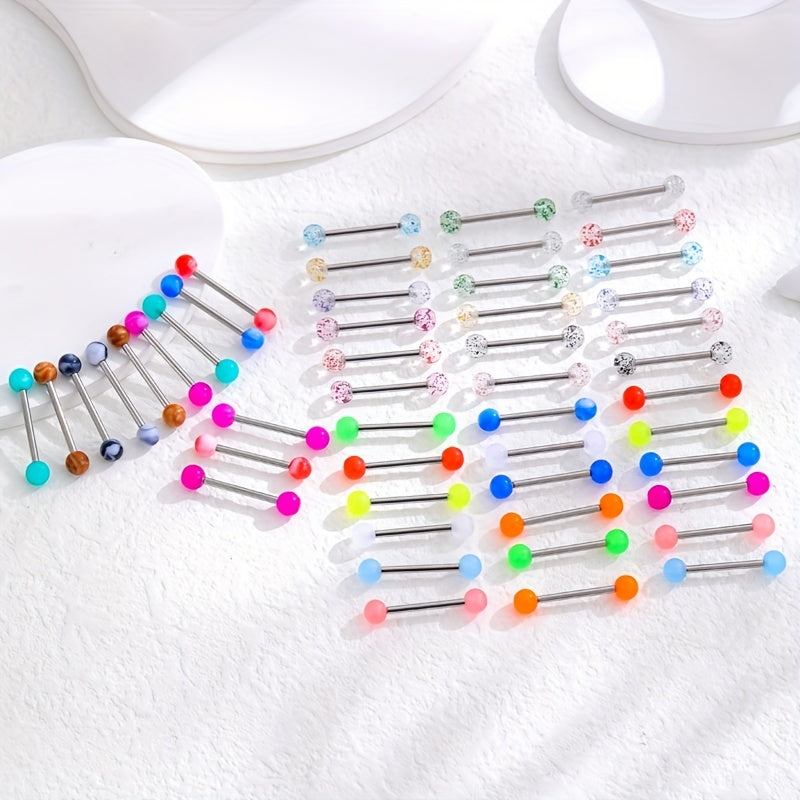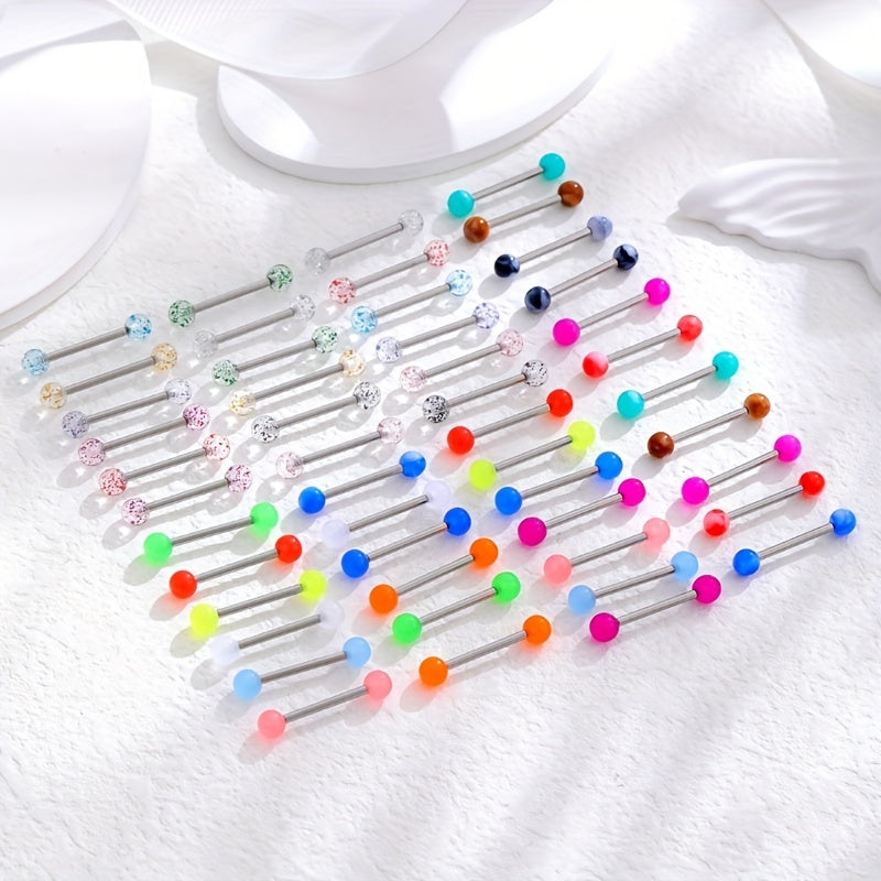 Get this set of 48 luminous two tongue stud rings made of stainless steel for your body jewelry collection.