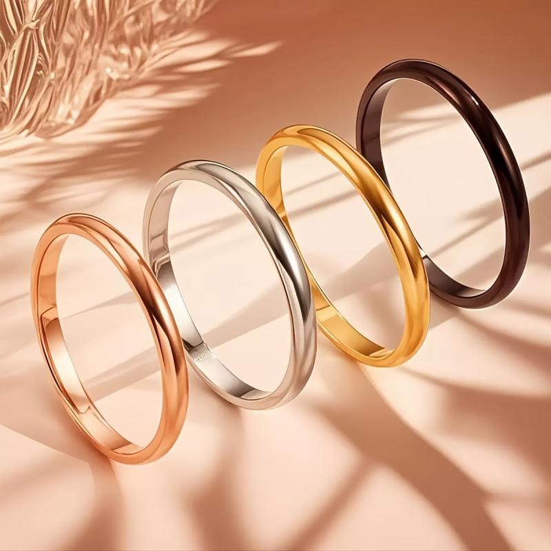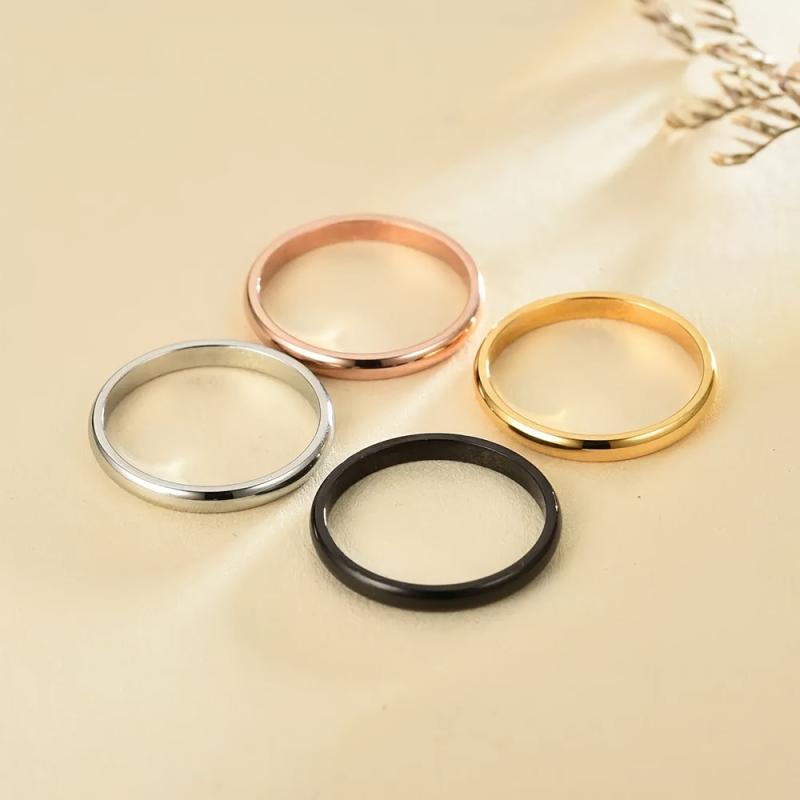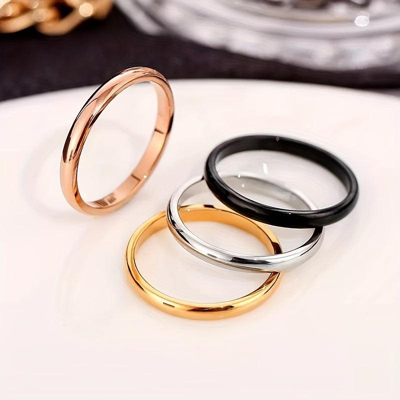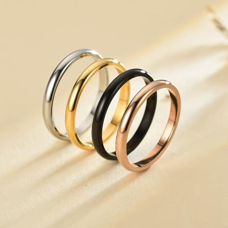 These fashionable stainless steel rings feature a colorful and versatile charm style. Each ring is 2mm in width, making them perfect for any occasion.