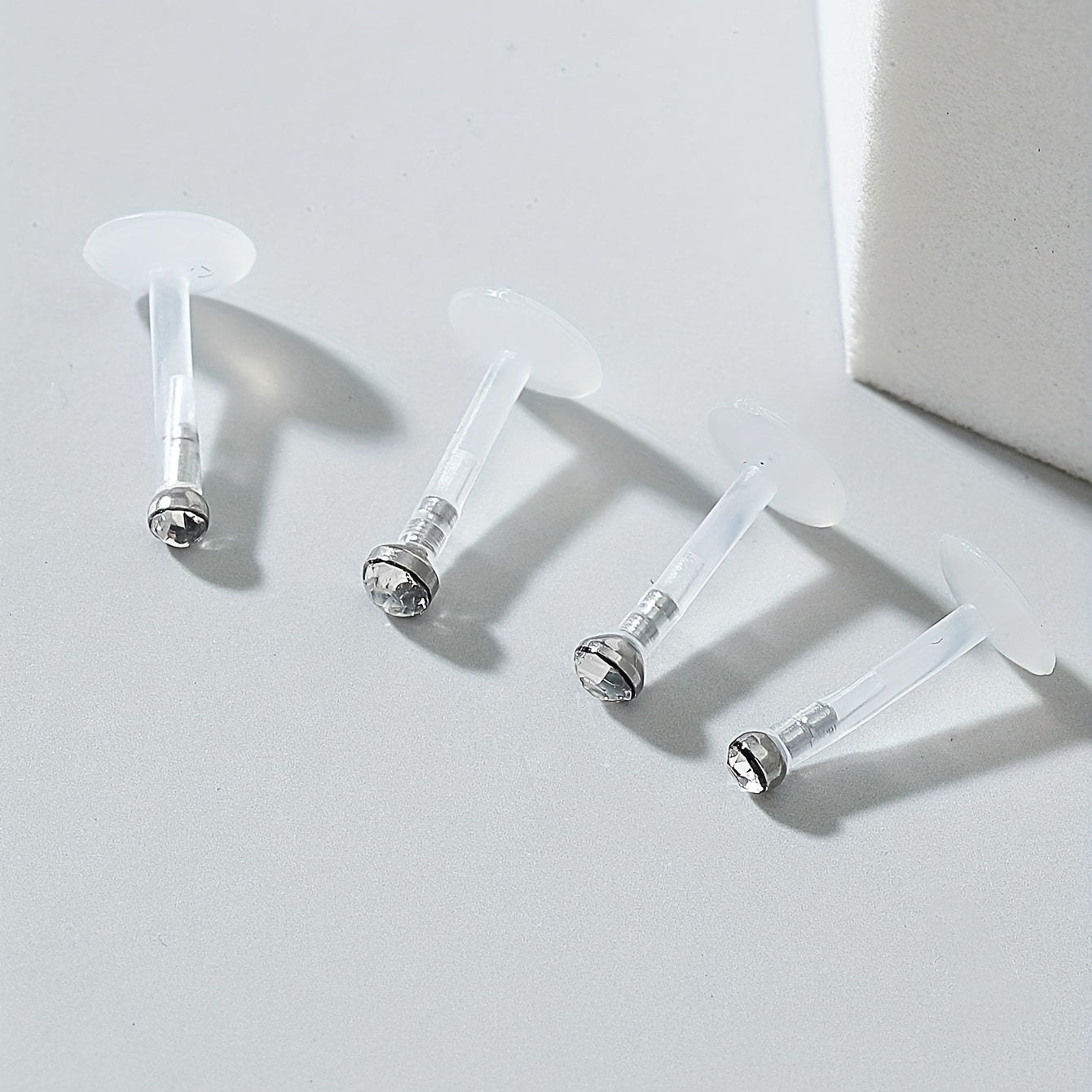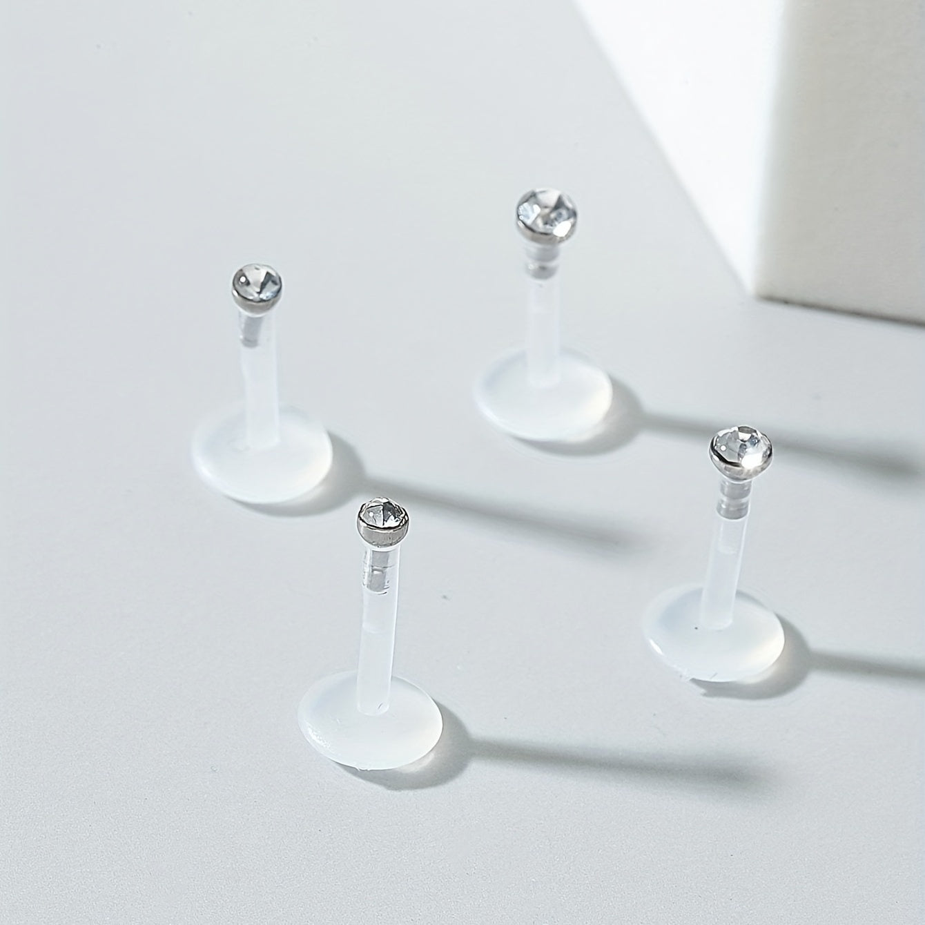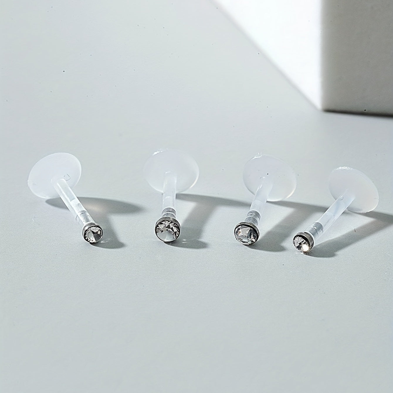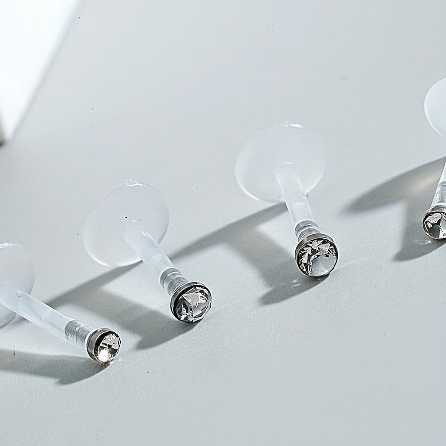 Enhance your look with this set of 4 crystal acrylic lip nail rings. Featuring vibrant rhinestones and a transparent design.