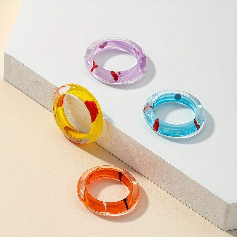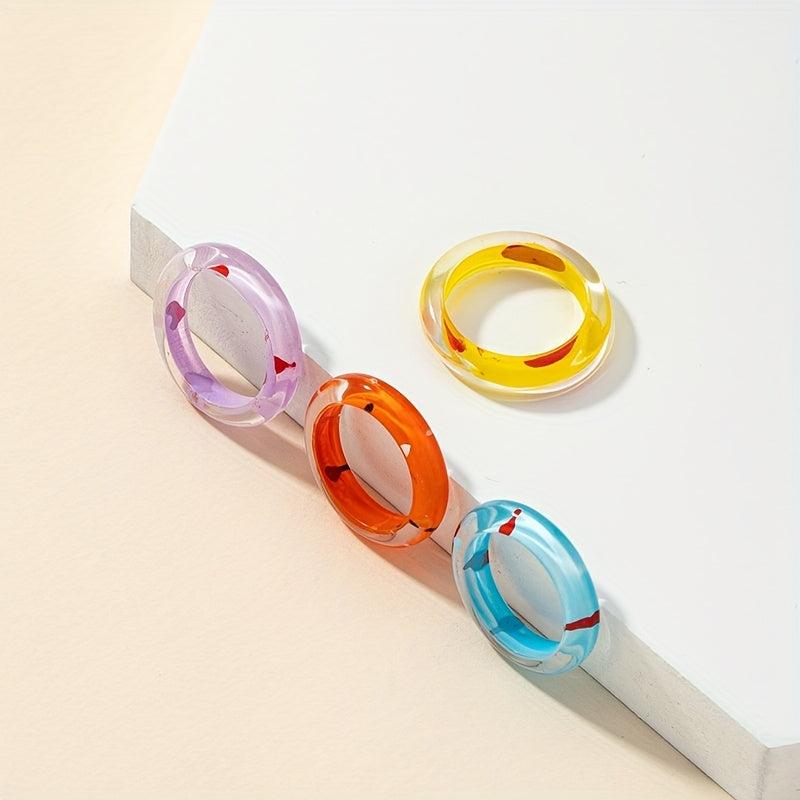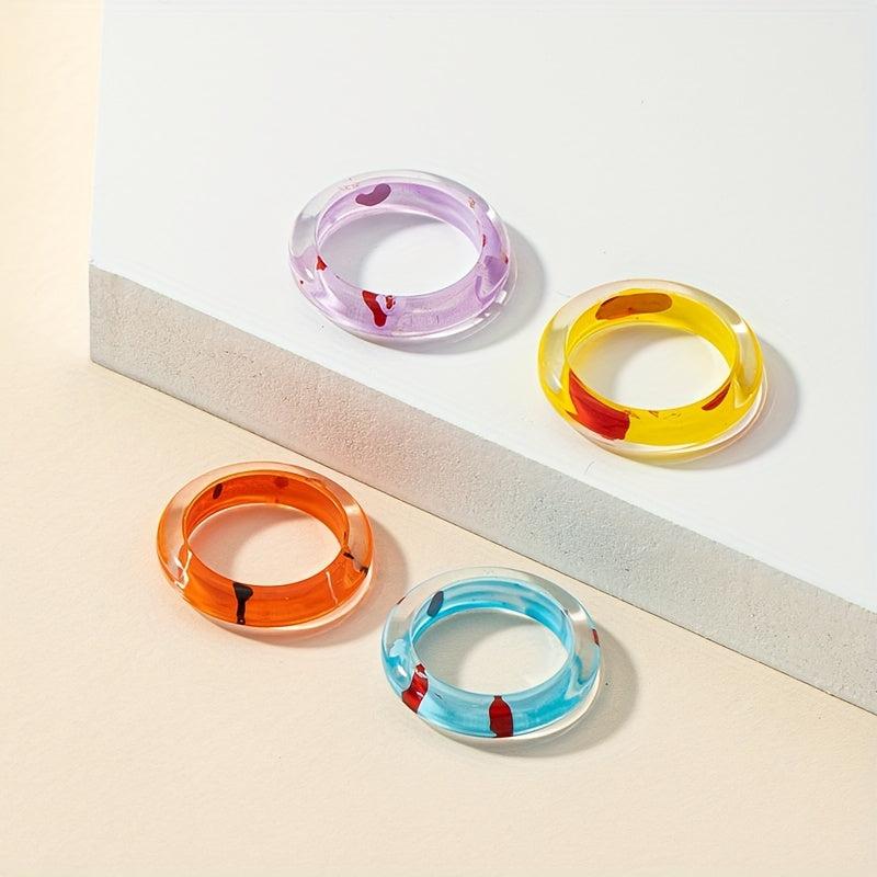 Elevate your party look with these vibrant orange, pink and yellow rings featuring geometric patterns. Ideal for parties and music lovers.