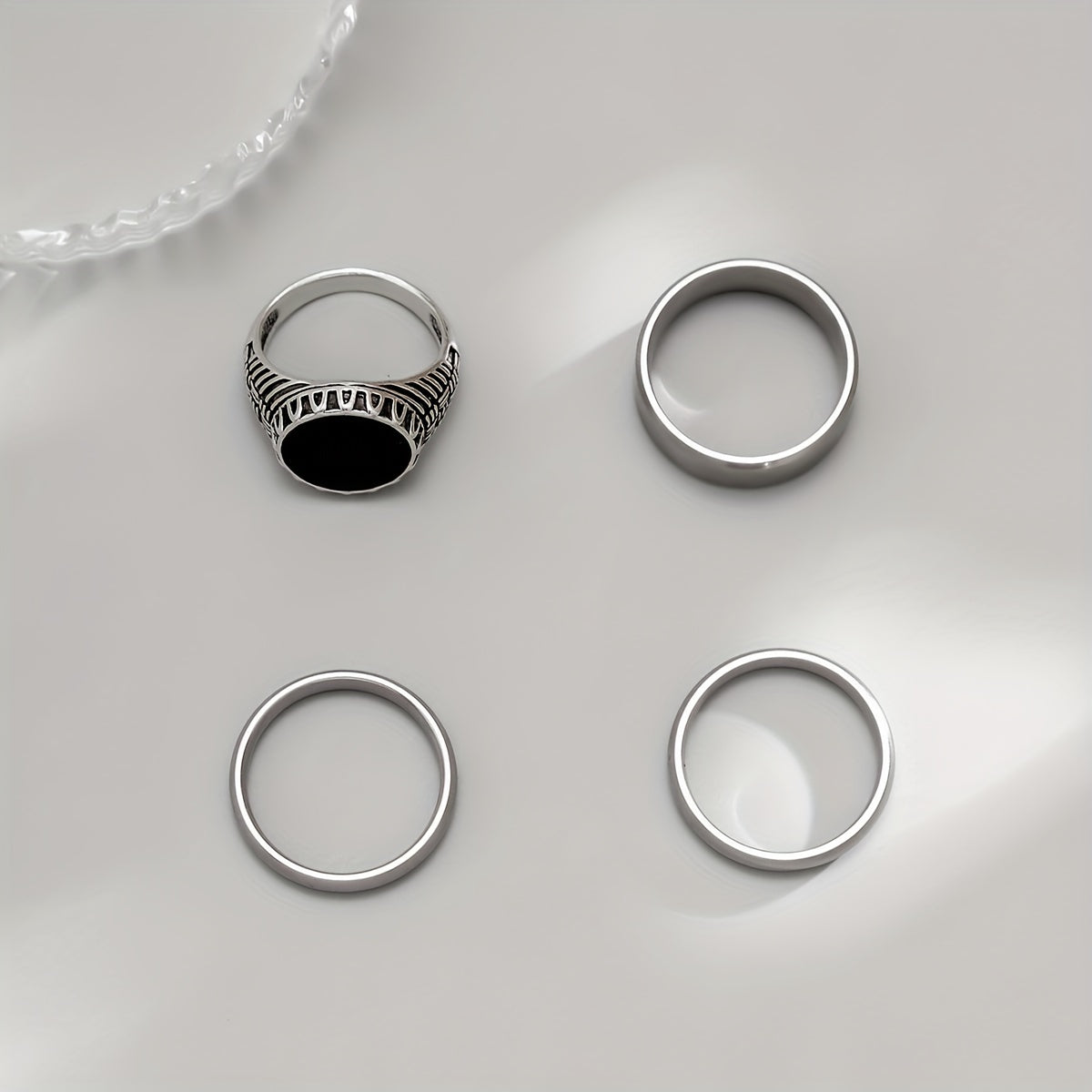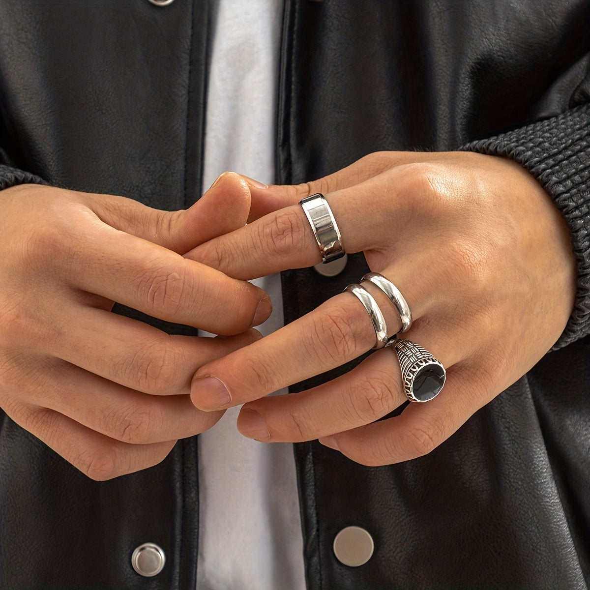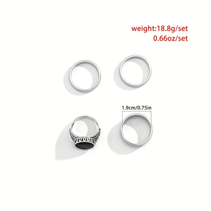 This set includes 4 rings made from high-quality titanium steel, featuring a punk hip hop design.