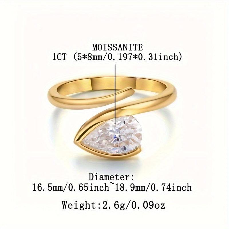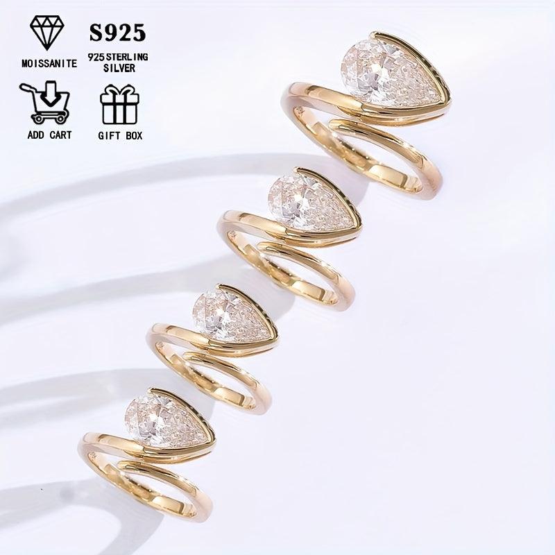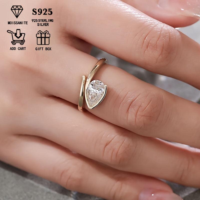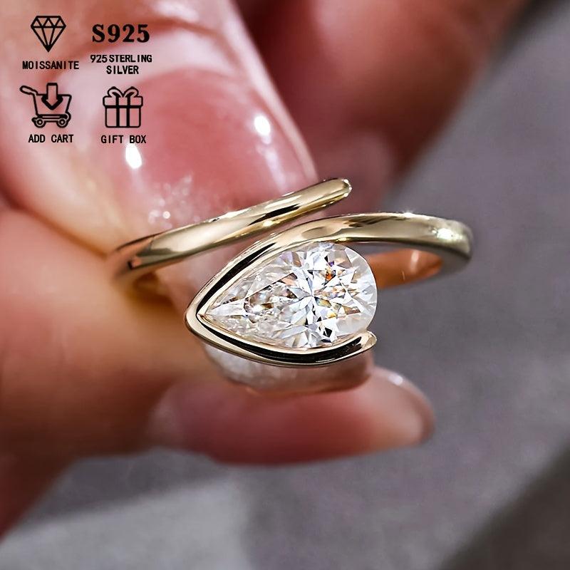This stunning ring features a 1ct pear-shaped Moissanite stone set in s925 silver. Perfect for engagement or wedding bands.