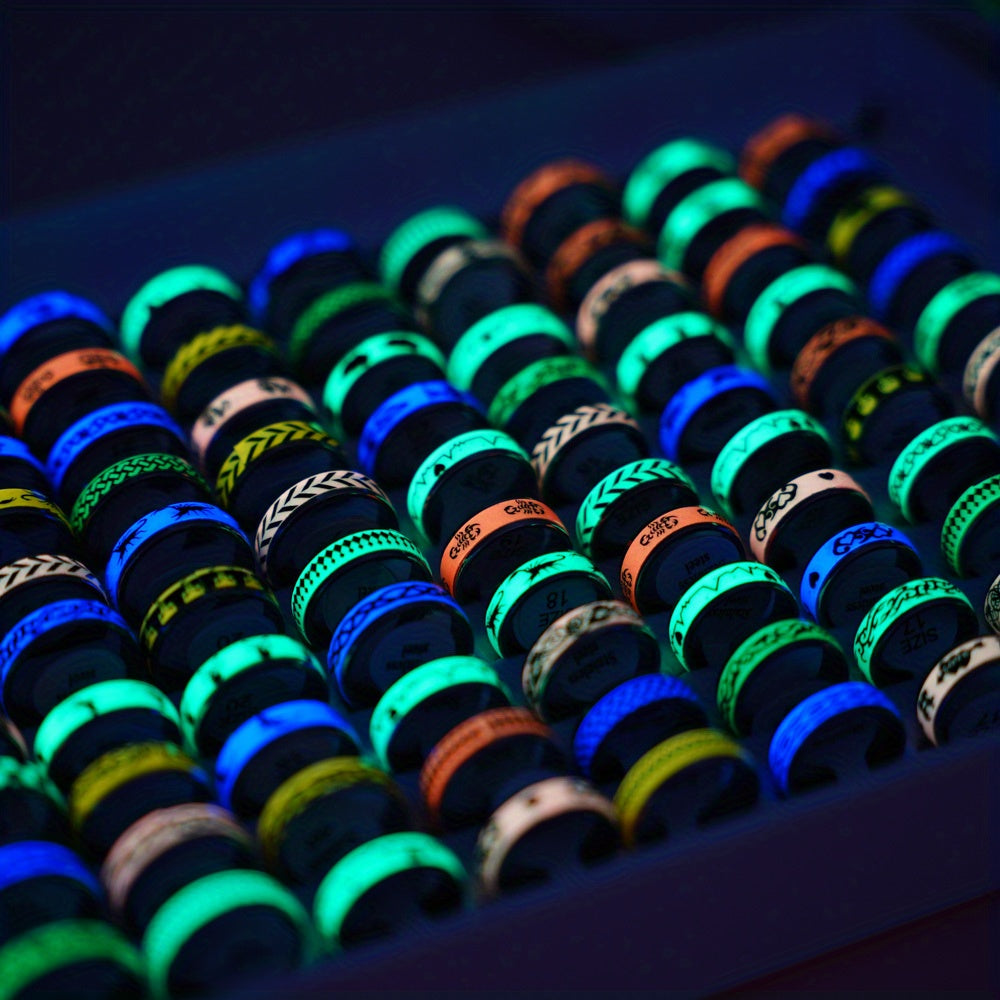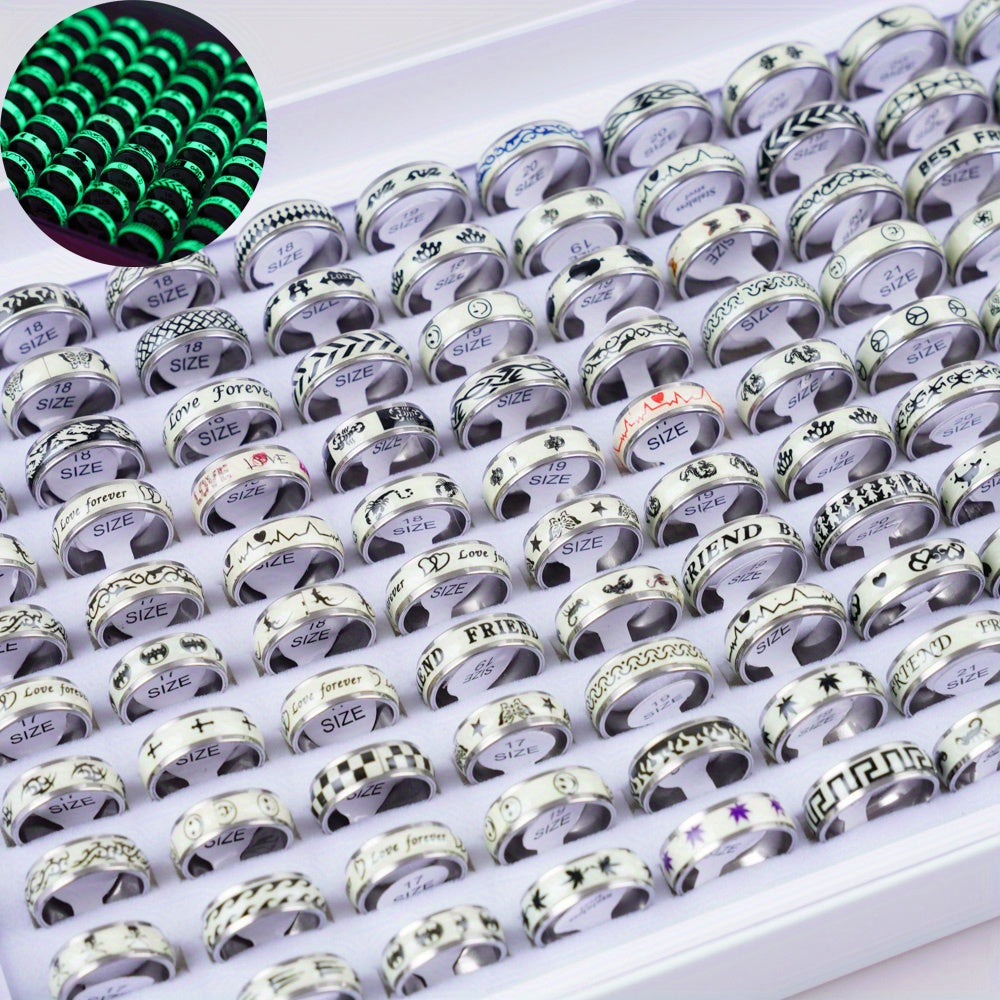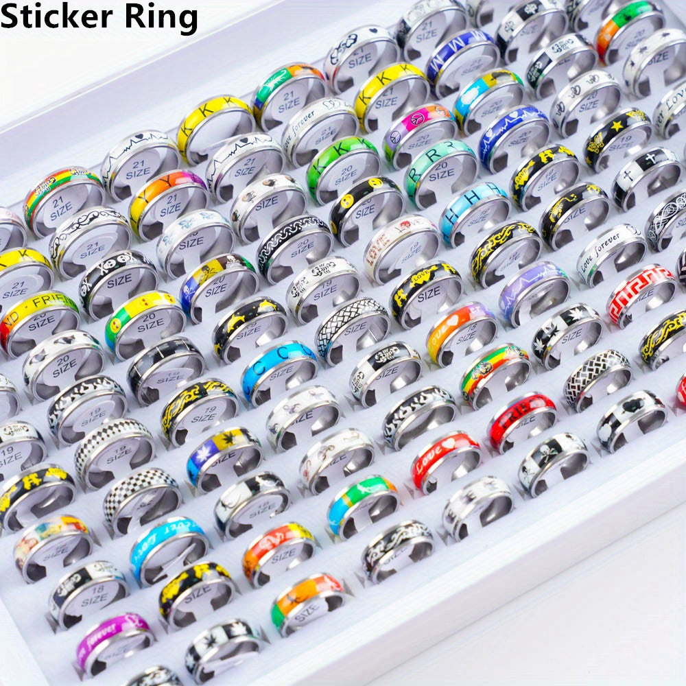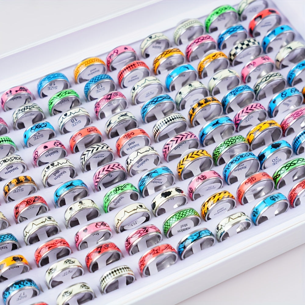 Add a touch of style and fun to your party with these classic stripe luminous sticker stainless steel rings. The mix of styles will add a trendy and playful vibe to your outfit.