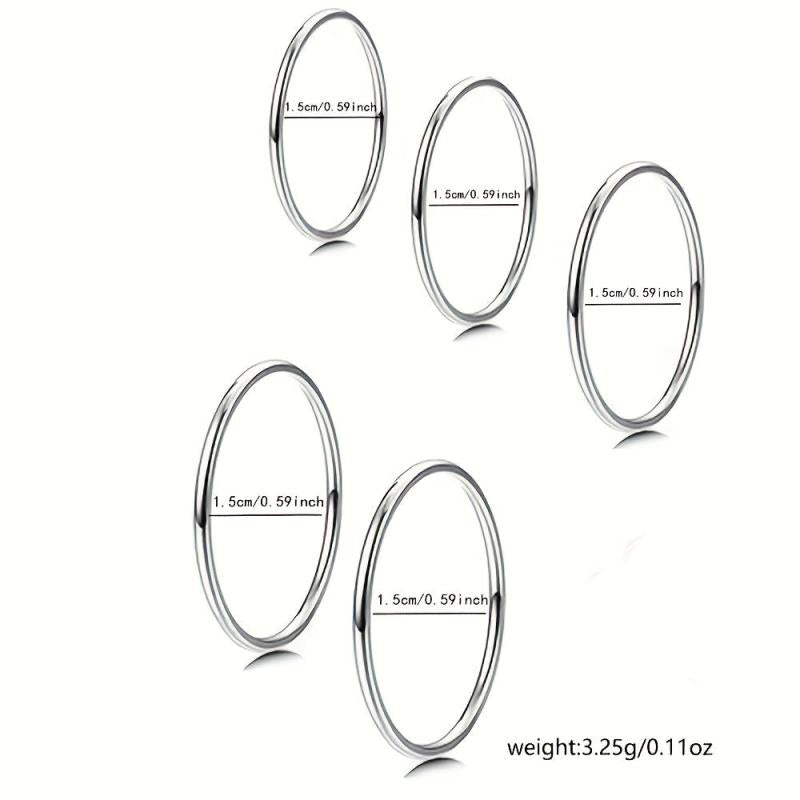 This set includes minimalist stainless steel stacked rings that are perfect for daily wear or as a stacking gift accessory. The rings feature a simple circle joint design.