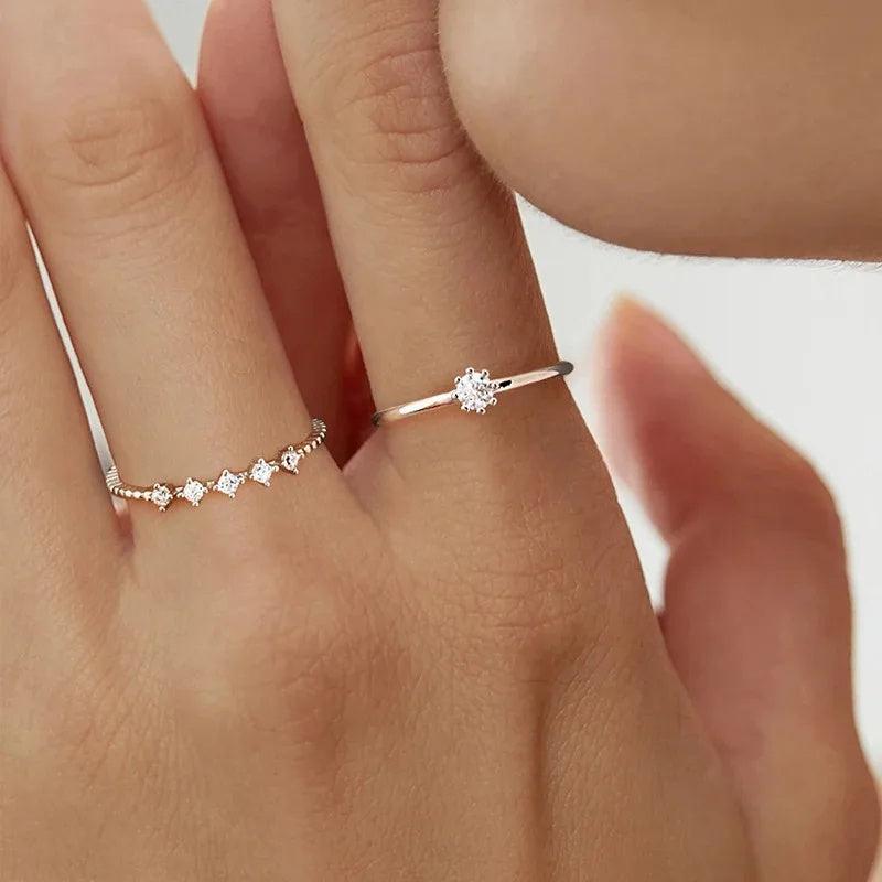 This stunning ring set features two 0.1 carat sparkling Moissanite stones set in 925 sterling silver. Elevate your style with this elegant and eye-catching piece.