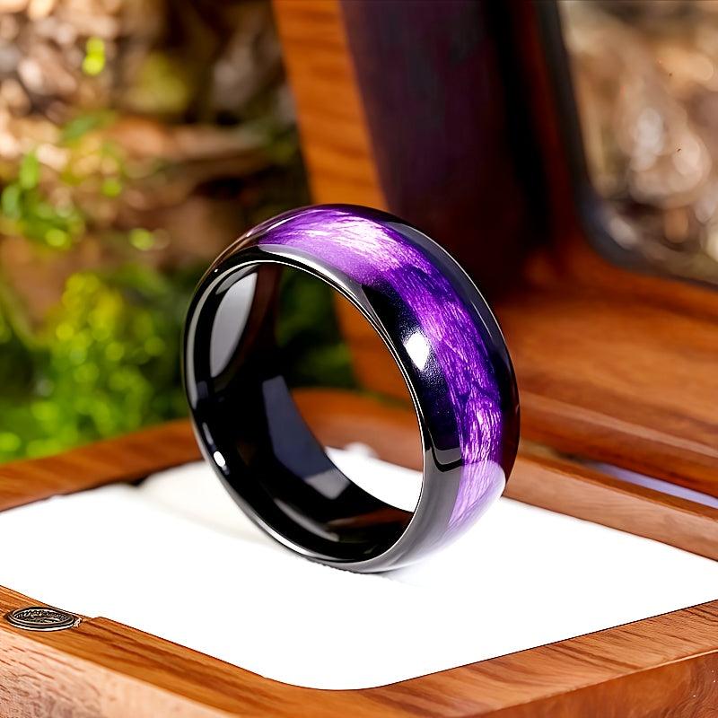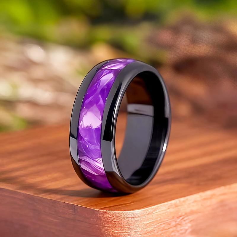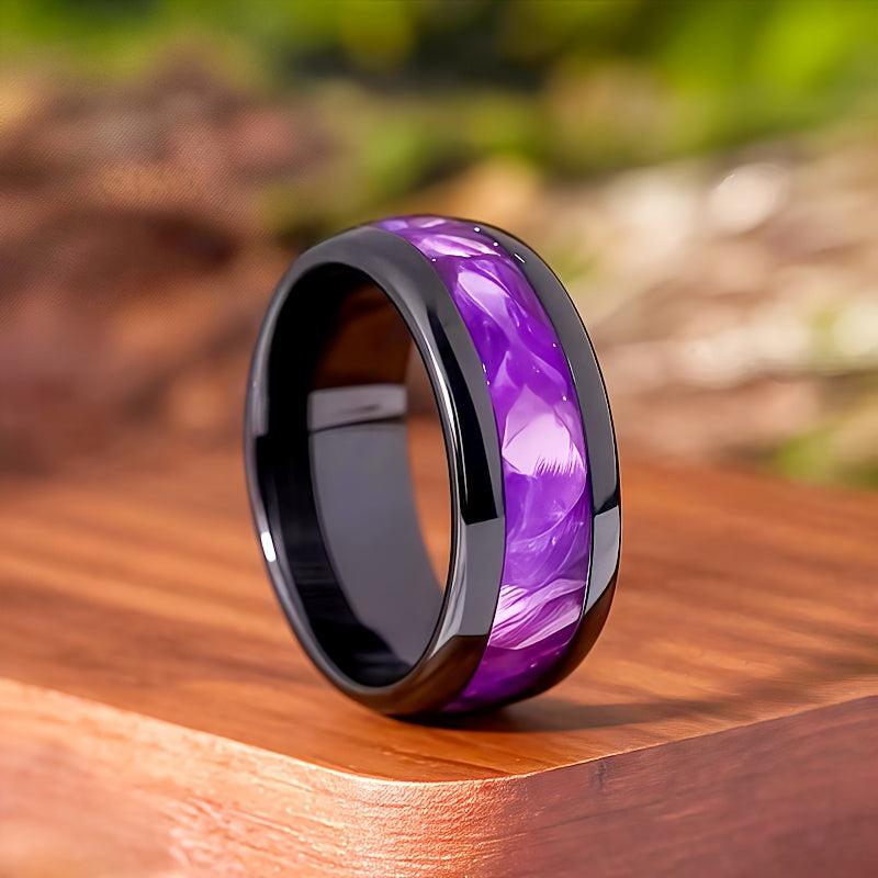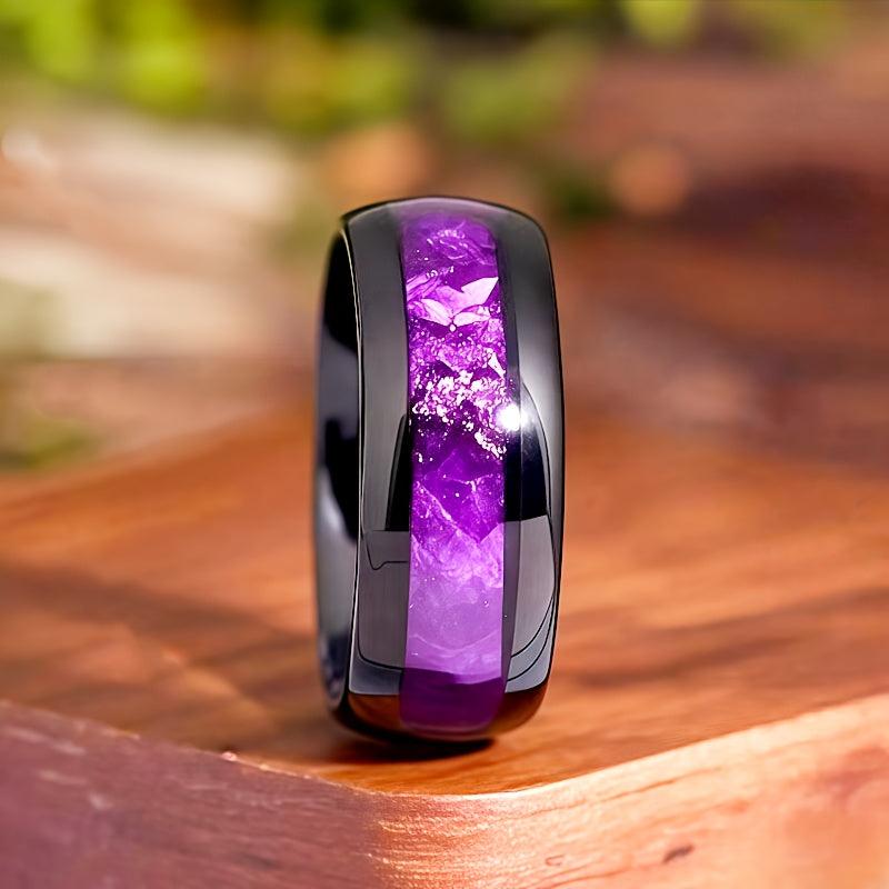 This stylish ring features a vibrant purple agate inlay and is made from durable 316L stainless steel. It's a perfect gift choice for anniversaries, birthdays, and Valentine's Day.