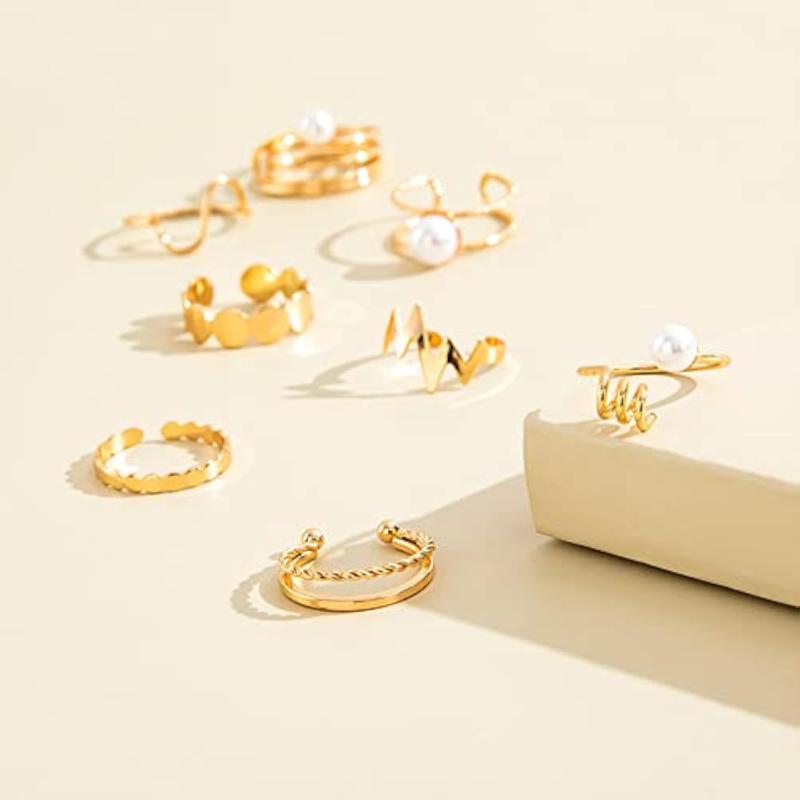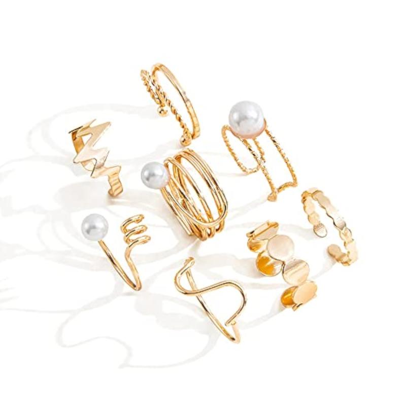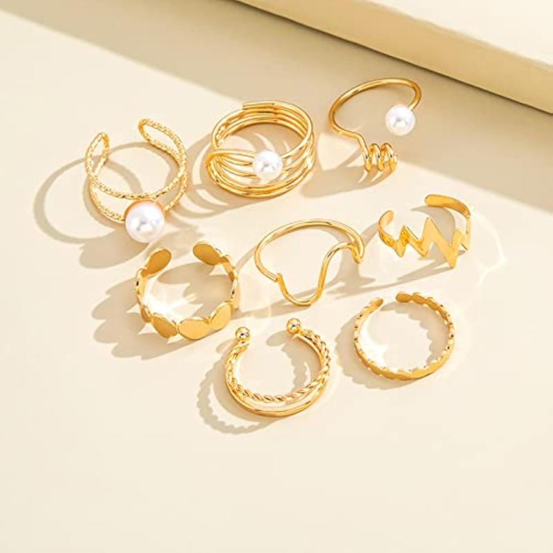 Enhance your style with this set of 8 stylish pearl rings, perfect for any occasion.