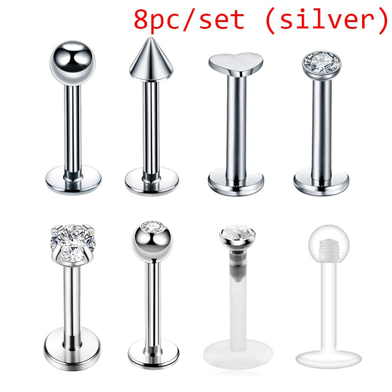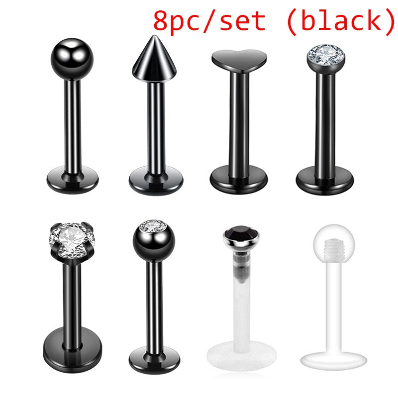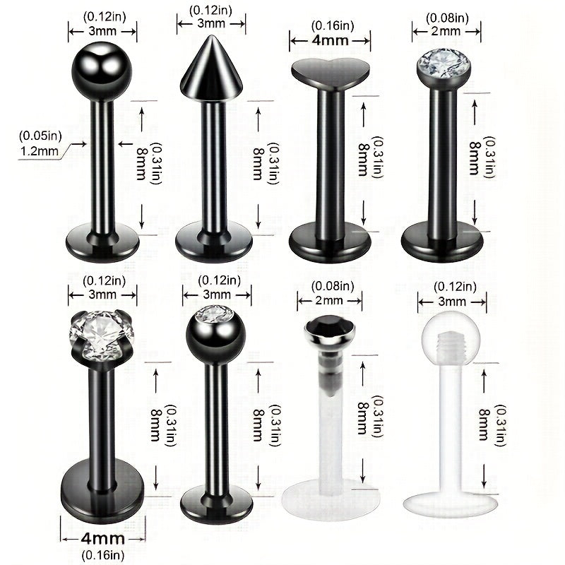 Enhance your style with this set of 8 titanium rings perfect for body piercing. Made for men, these rings are durable and stylish, adding a touch of edginess to your look.