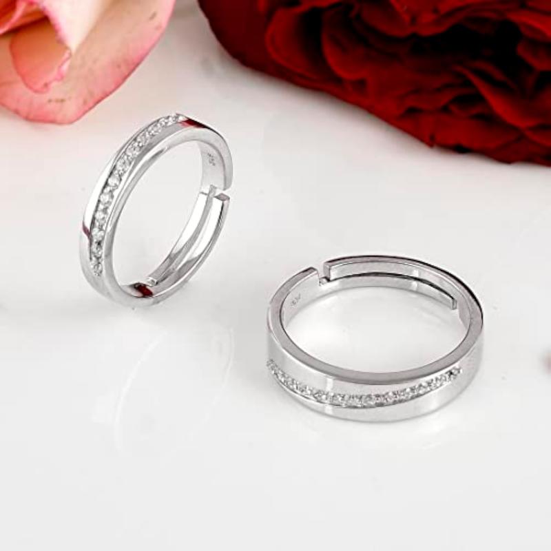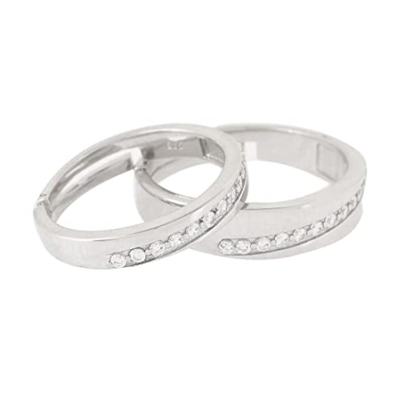 Elegant set of two 925 sterling silver rings with sparkling CZ stones. Perfect for couples.