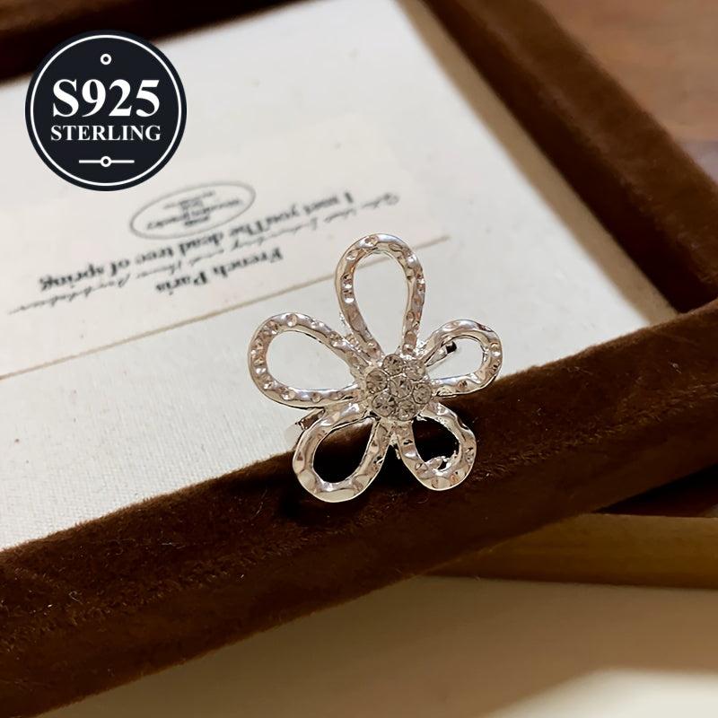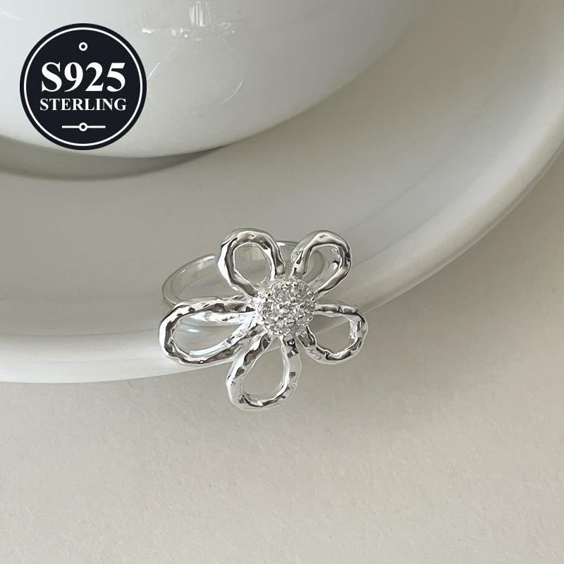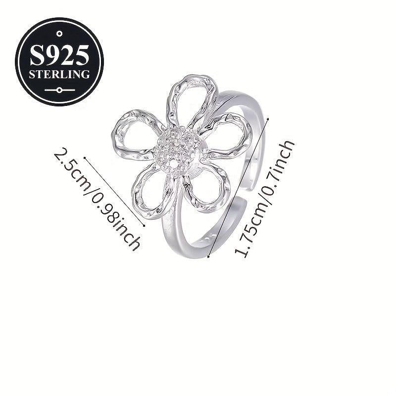 This stunning 925 hypoallergenic flower ring features an exaggerated hollow design with irregular petal details. It comes in a minimalist geometric style, perfect for adding a touch of elegance to any outfit. The ring is accompanied by an anti-oxidation storage box.