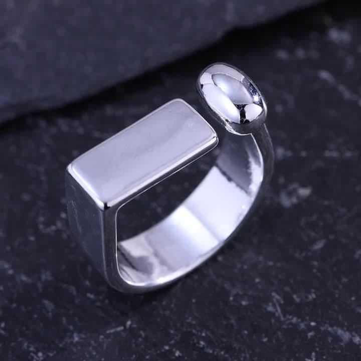 This stylish 925 pure silvery ring features a geometric rectangular design. It's perfect for parties and daily wear.