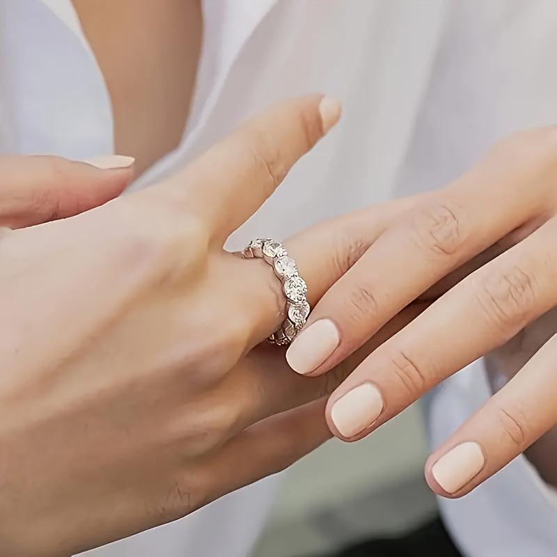 925 Silver 7ct Moissanite Eternal Love Ring D VVS1 Round Cut Hand Carved Wedding