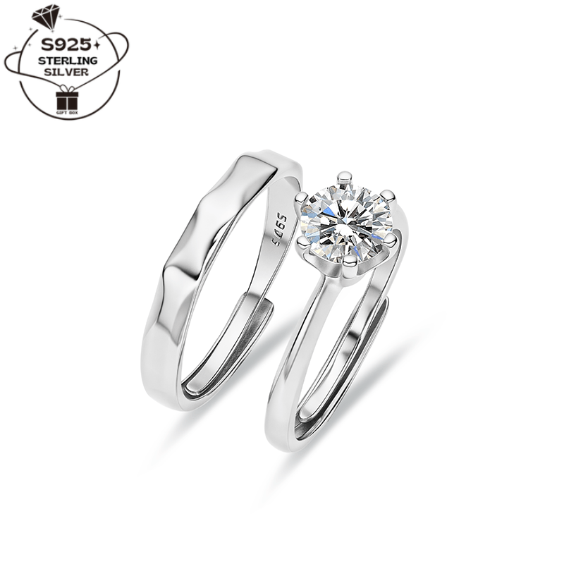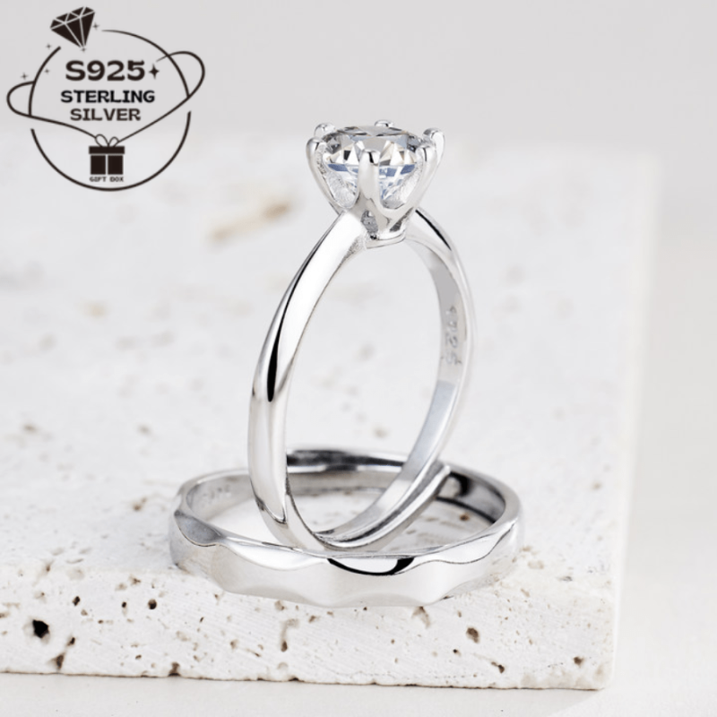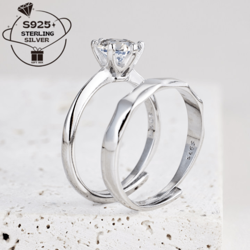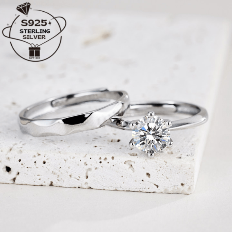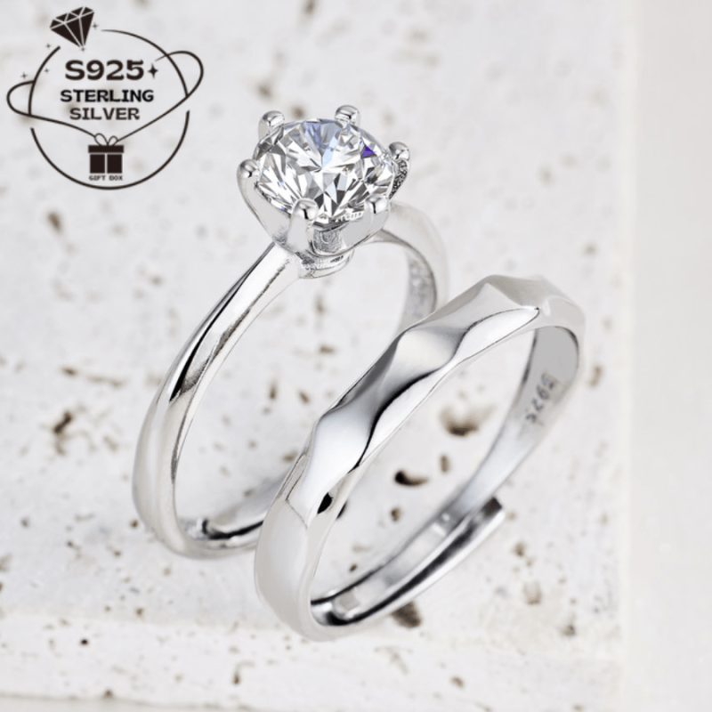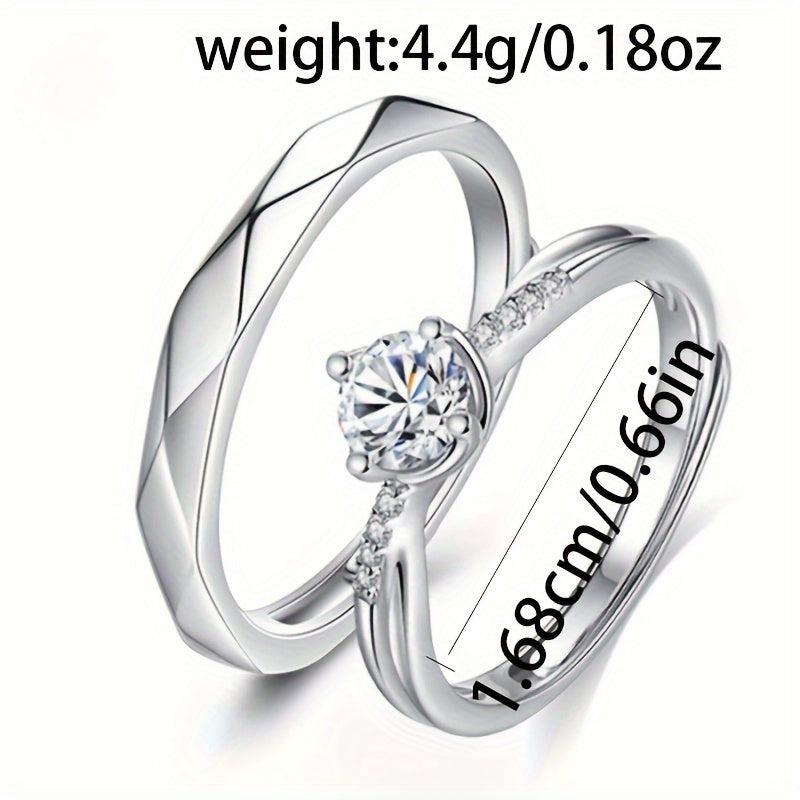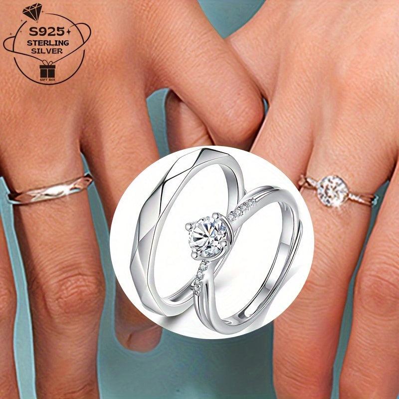 Pair of 925 Silver Adjustable Open Couple Rings and Sexy Sparkling Couple Rings for Men and Women Proposal Rings Wedding Bands Perfect Gift