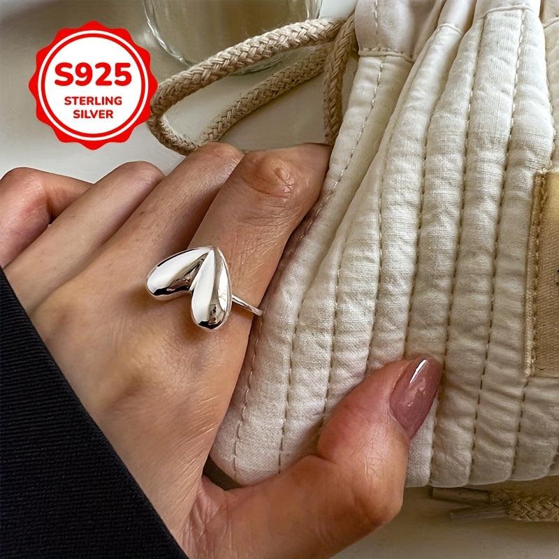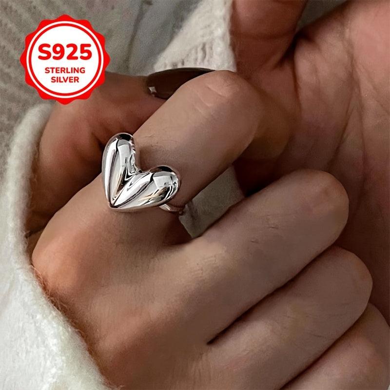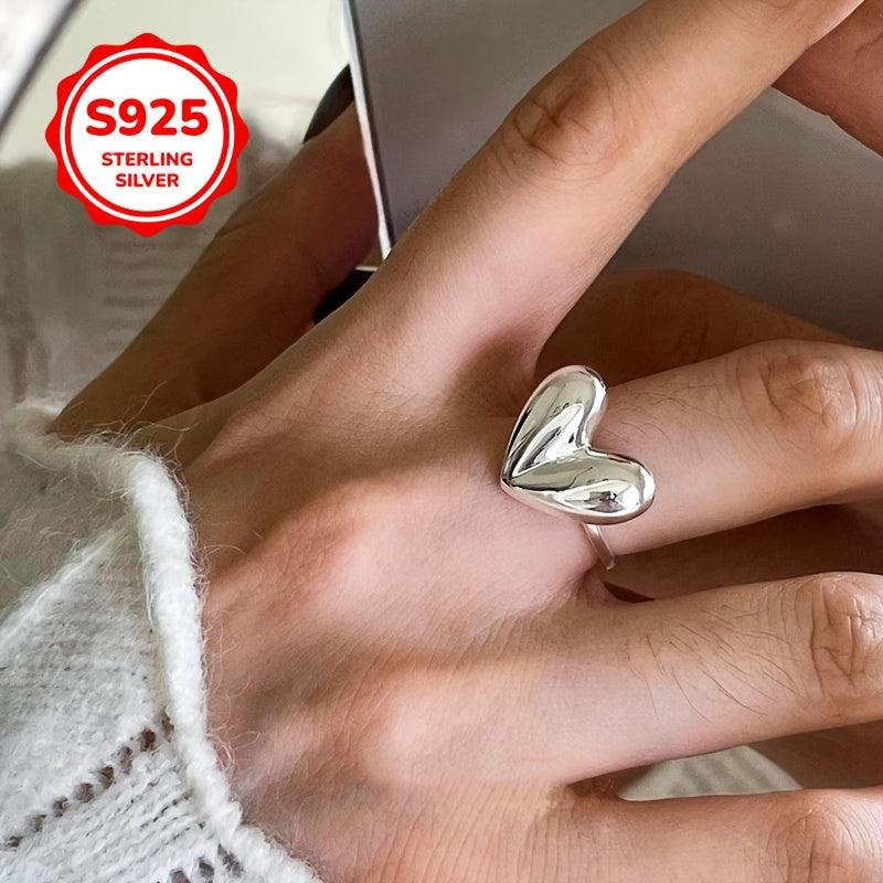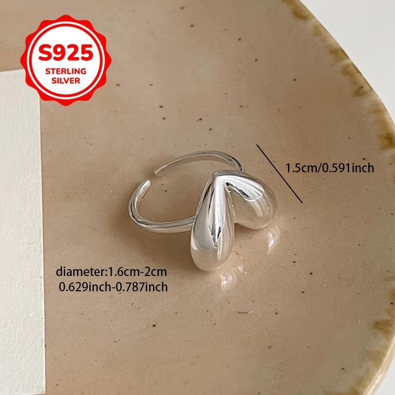 This 925 sterling silver ring features an adjustable opening design with a heavy-duty wide edge and irregular love motif, making it a unique and stylish accessory.