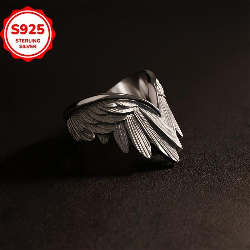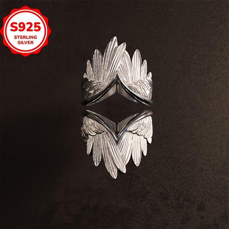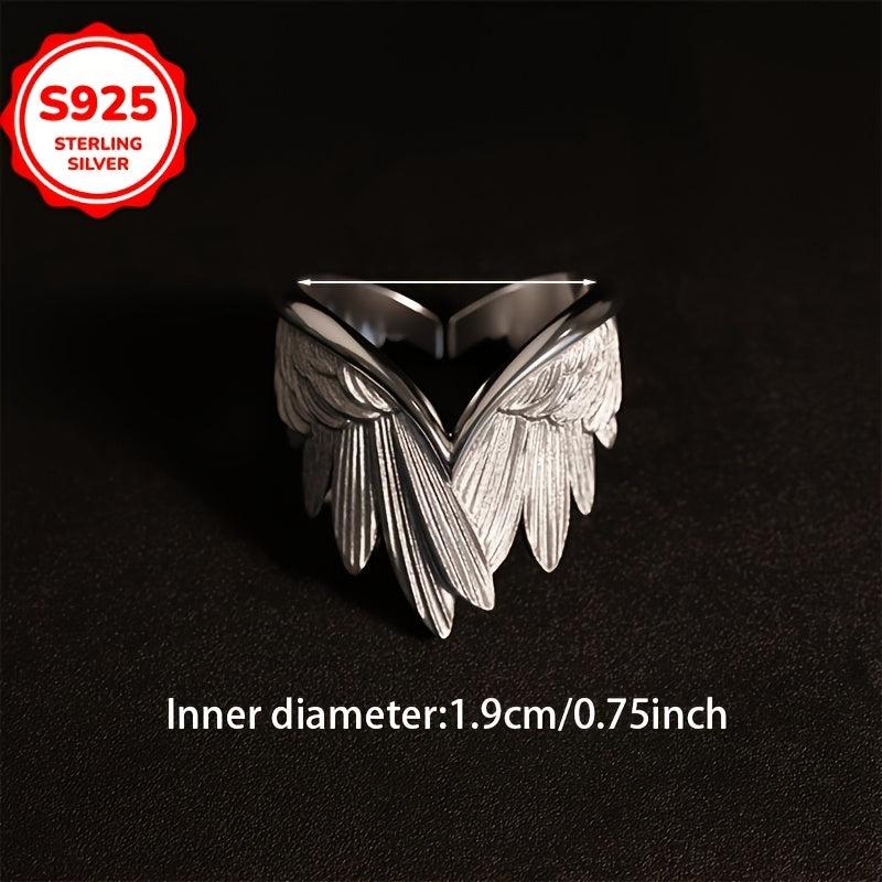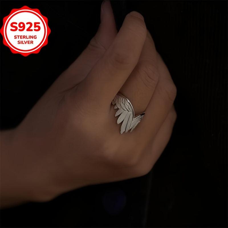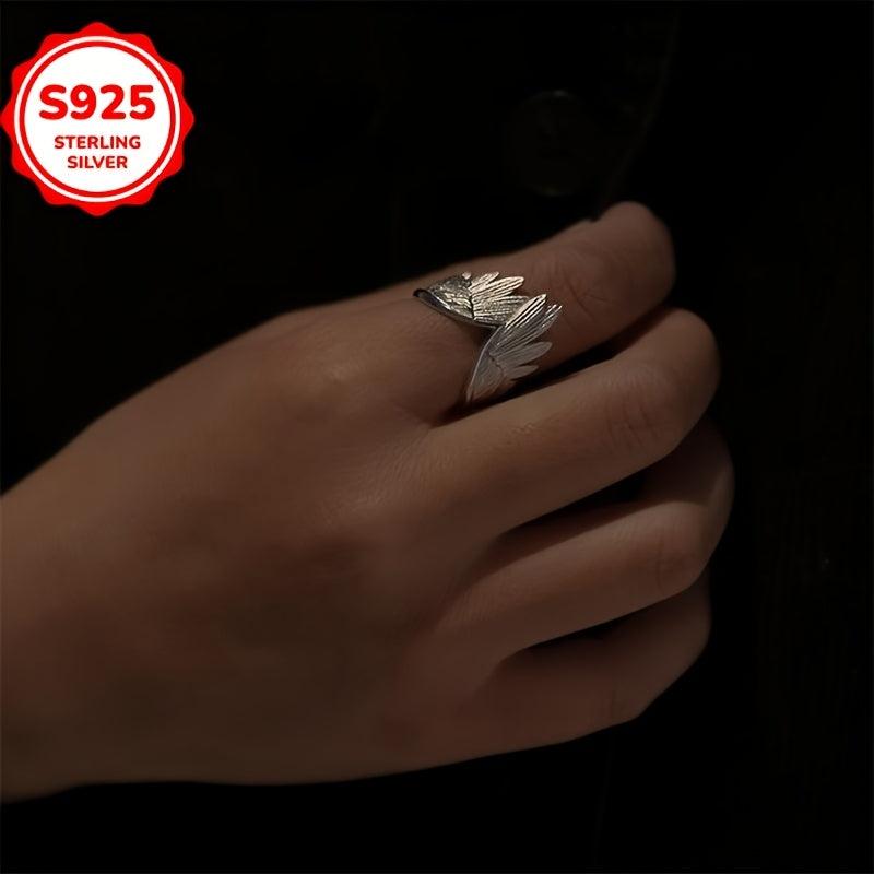This 925 sterling silver adjustable ring features a vintage feather wing design that is hypoallergenic and versatile for all seasons. It makes a perfect gift for any occasion and is ideal as feather jewelry.