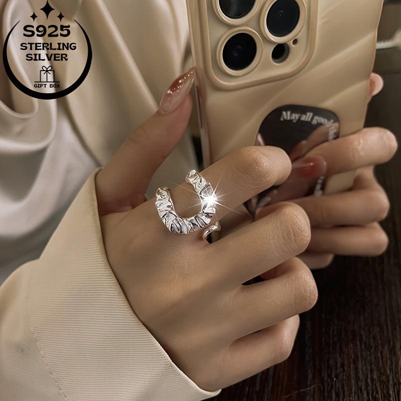 This U-shaped ring made of sterling silver is perfect for daily wear, vacation, and special occasions. Its textured design adds a unique touch to your outfit.