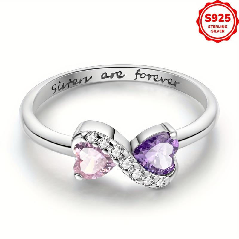 This 925 sterling silver ring is the perfect gift for weddings, engagements, birthdays, and more. Show your sisterly bond with this double heart infinity design.