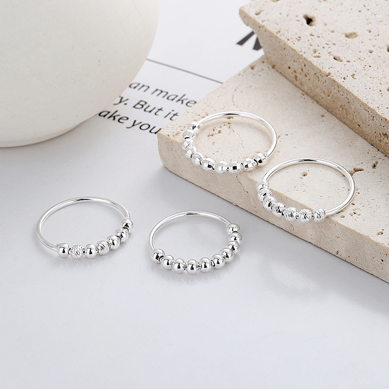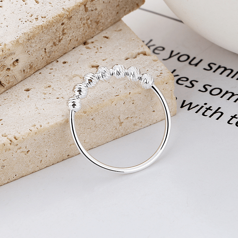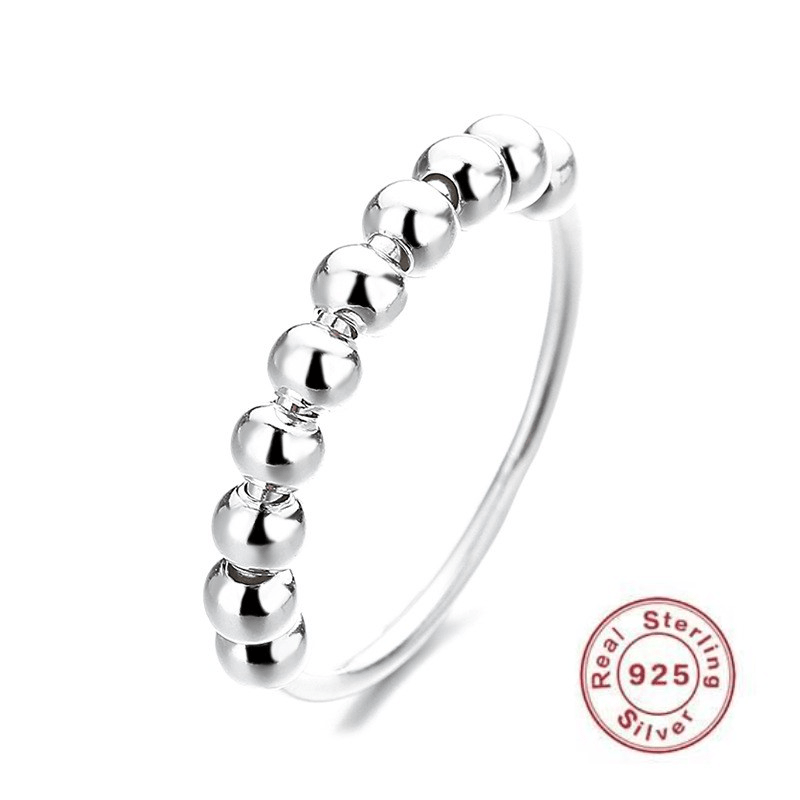 This 925 sterling silver ring is designed to help relieve anxiety. The spinning beads on the ring provide a calming effect, making it ideal for fidgeting.