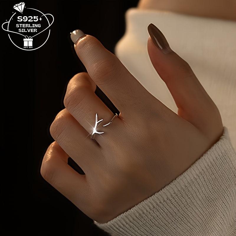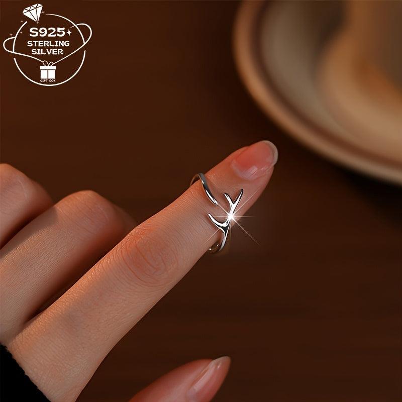 Elevate your style with this elegant antler-shaped ring crafted from 925 silver. Perfect for casual wear and parties, it's an ideal gift for couples.