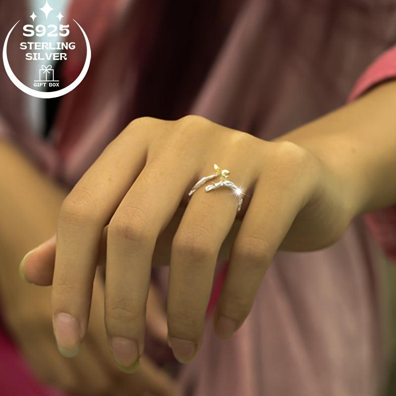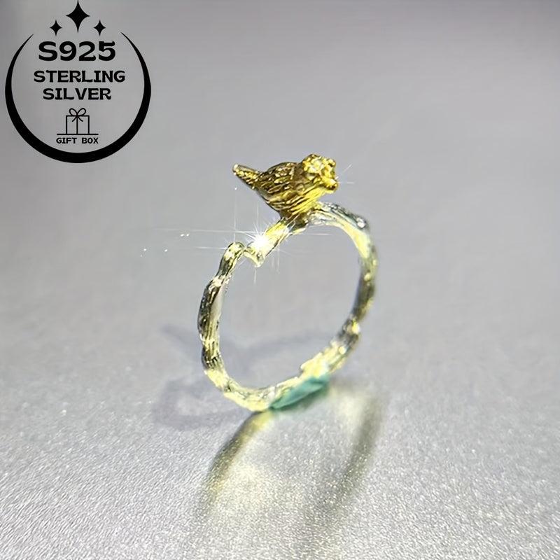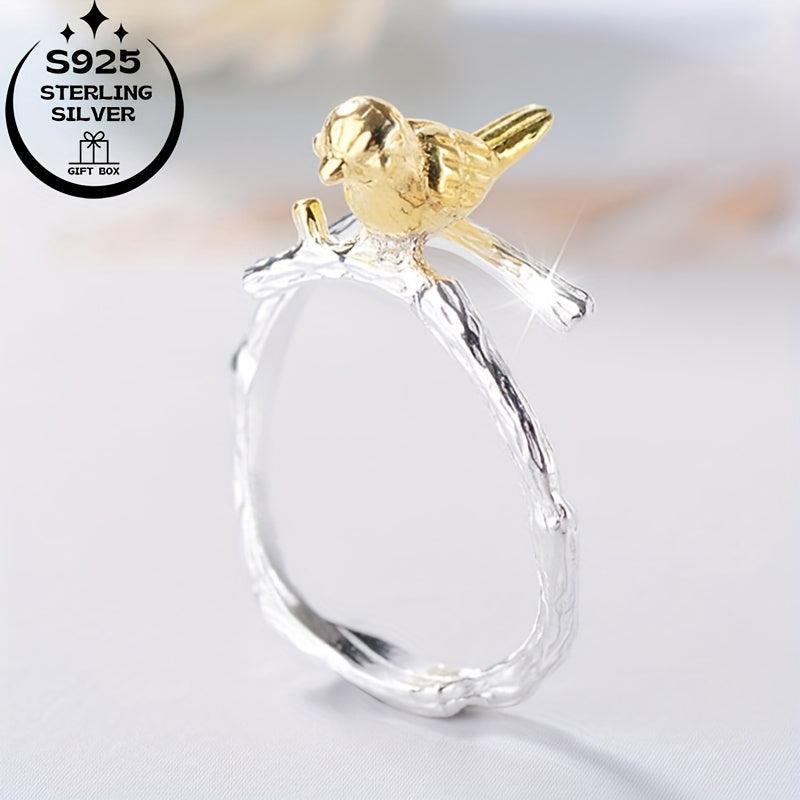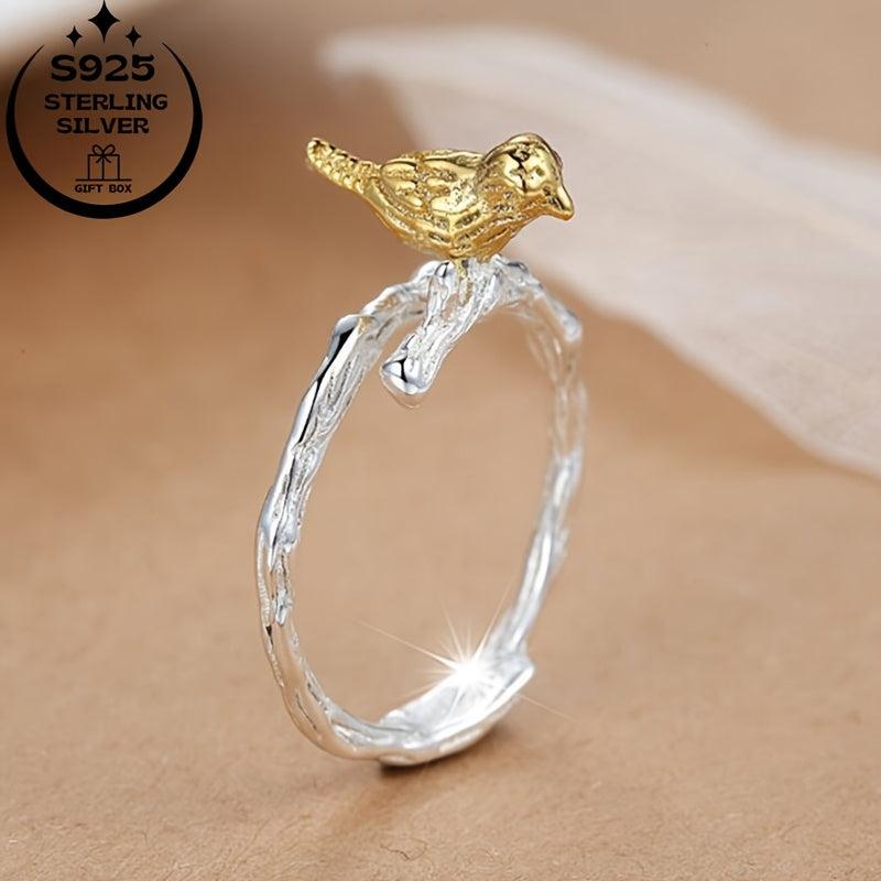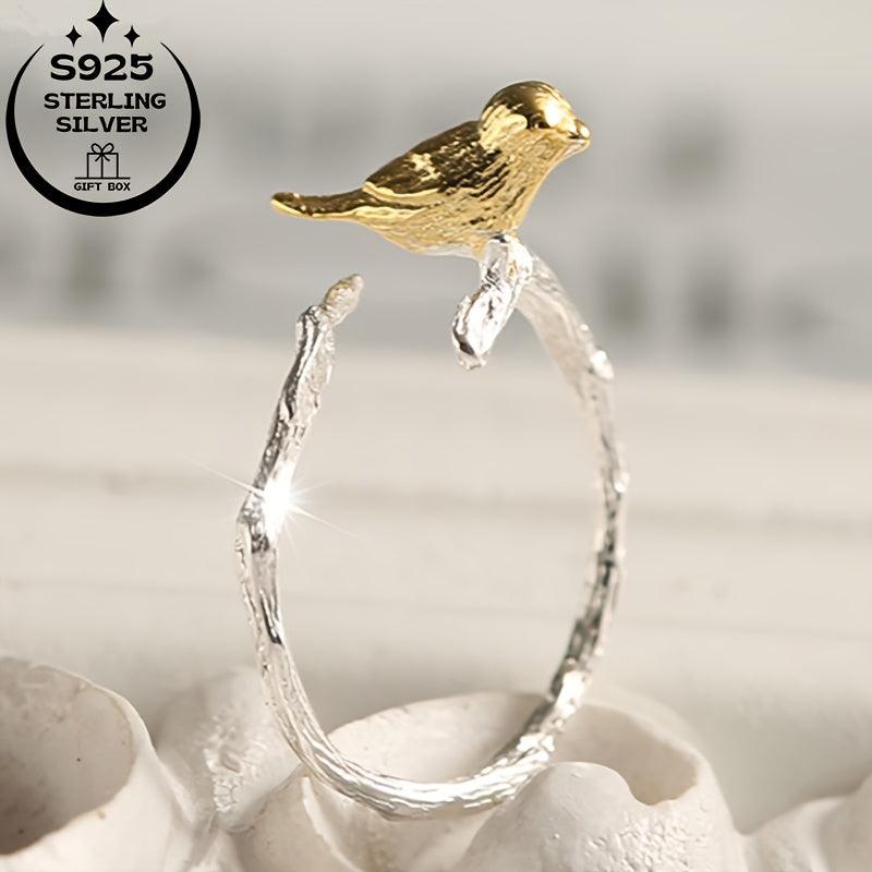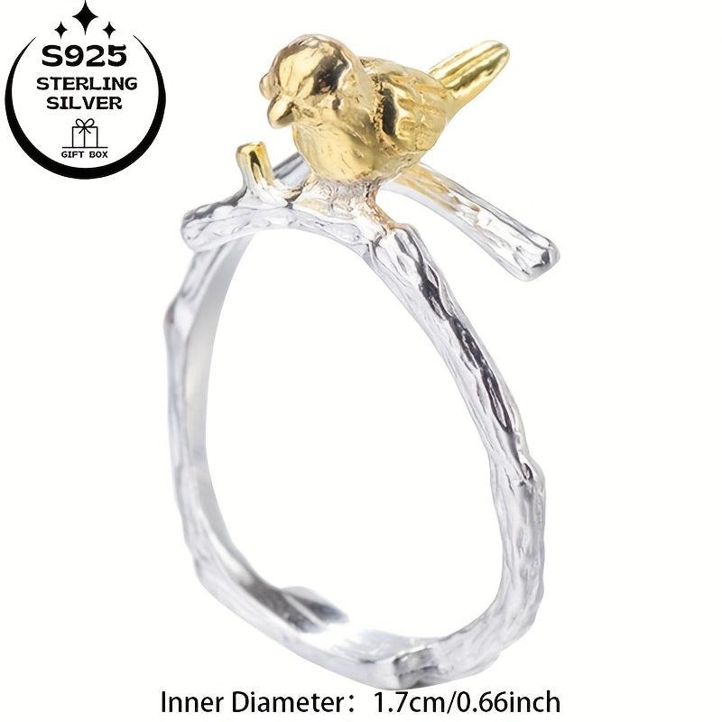 This minimalist 3D bird ring is crafted from 925 silver, featuring a delicate branch design. Ideal for music festivals, Easter parties, or casual attire.