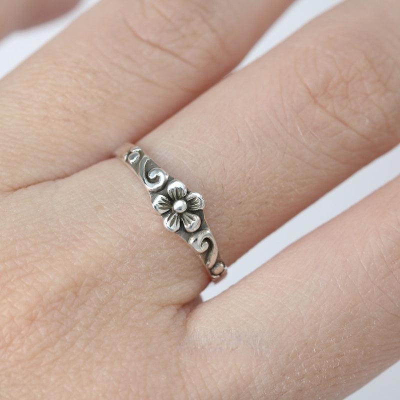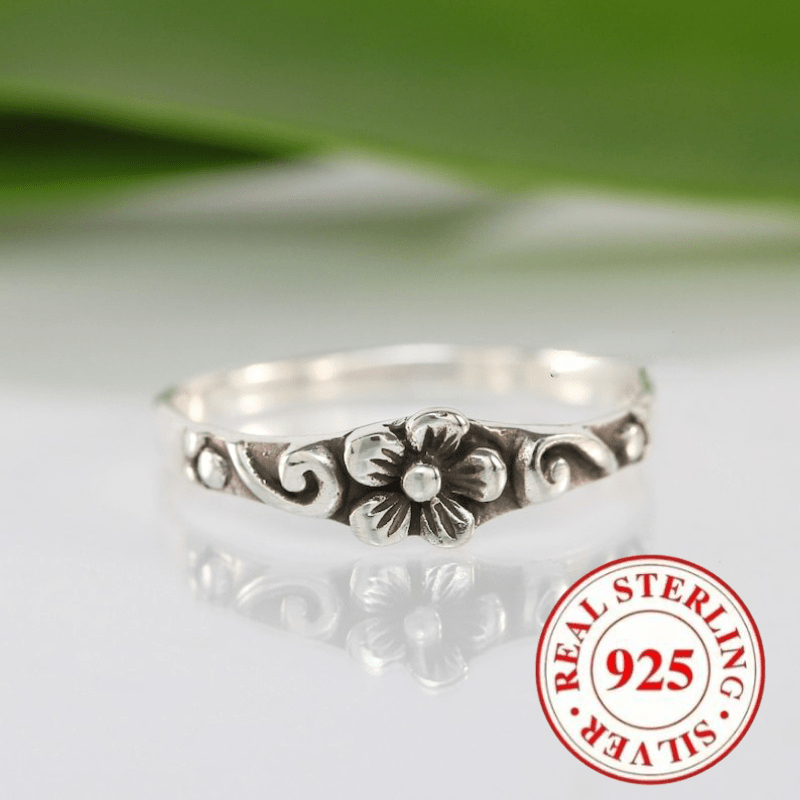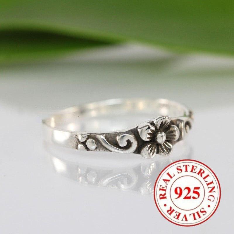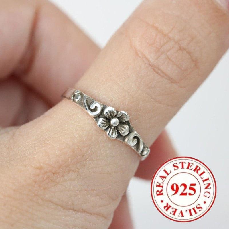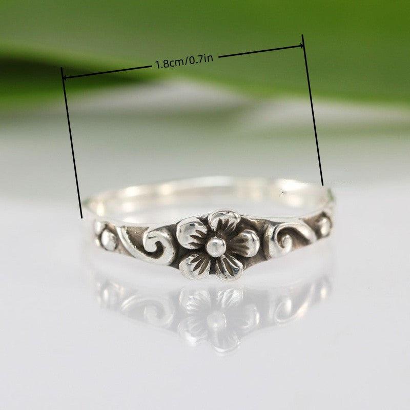 This vintage bohemian floral ring is made of 925 sterling silver and features intricate petal patterns. It is perfect for daily wear, parties, and festive occasions.