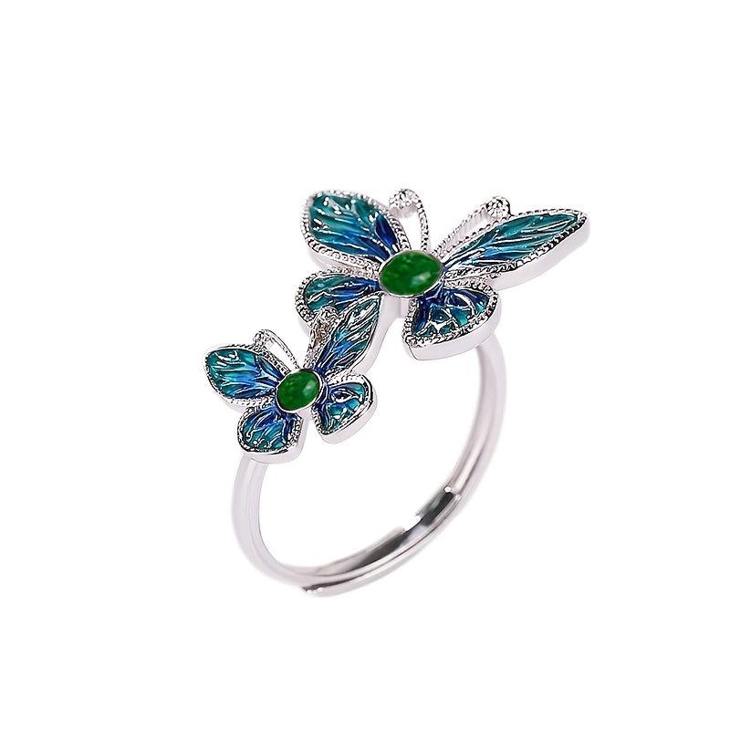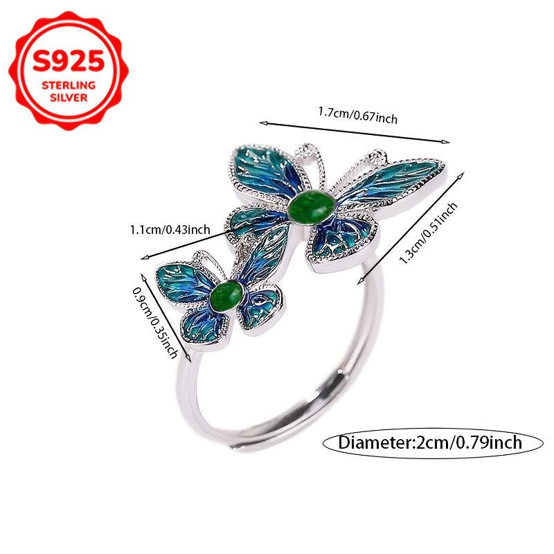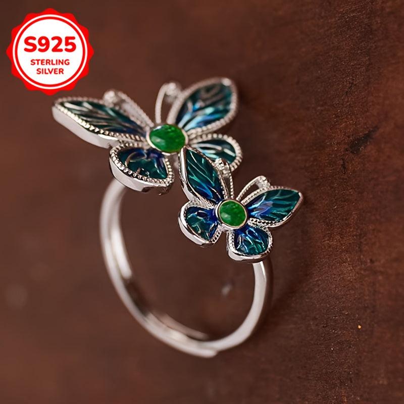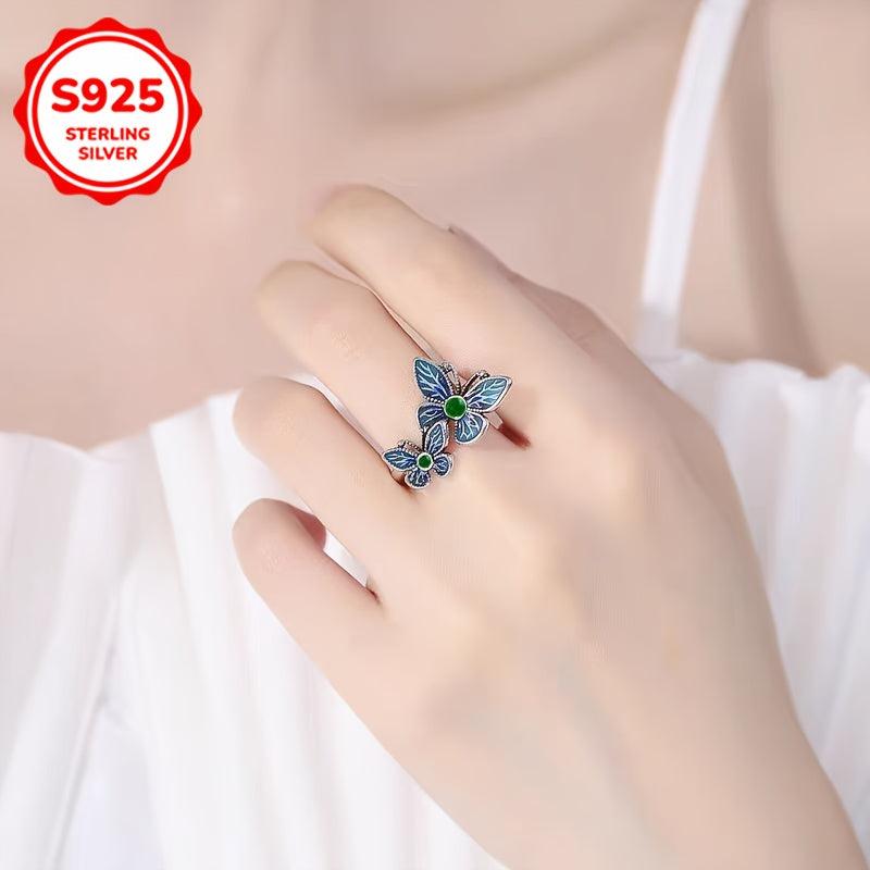 Elegant and stylish 925 silver double butterfly ring with a vintage artistic design. Perfect for daily wear, ideal as a Valentine's or BFF gift. Features a low allergy metal composition suitable for sensitive skin.