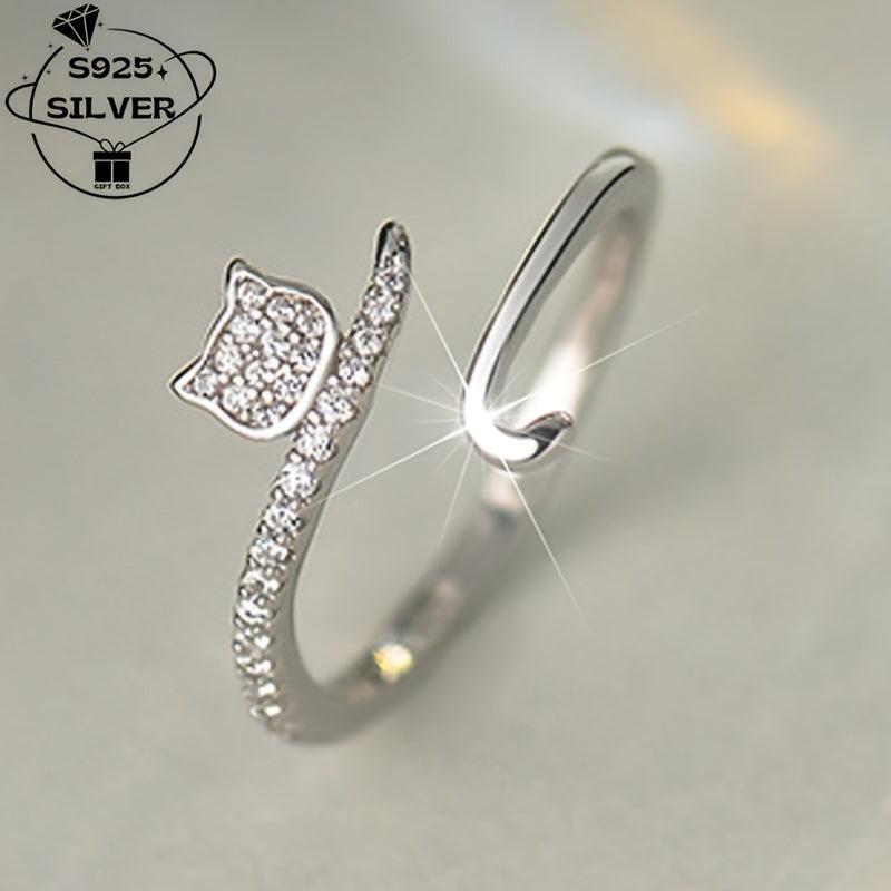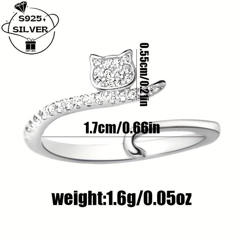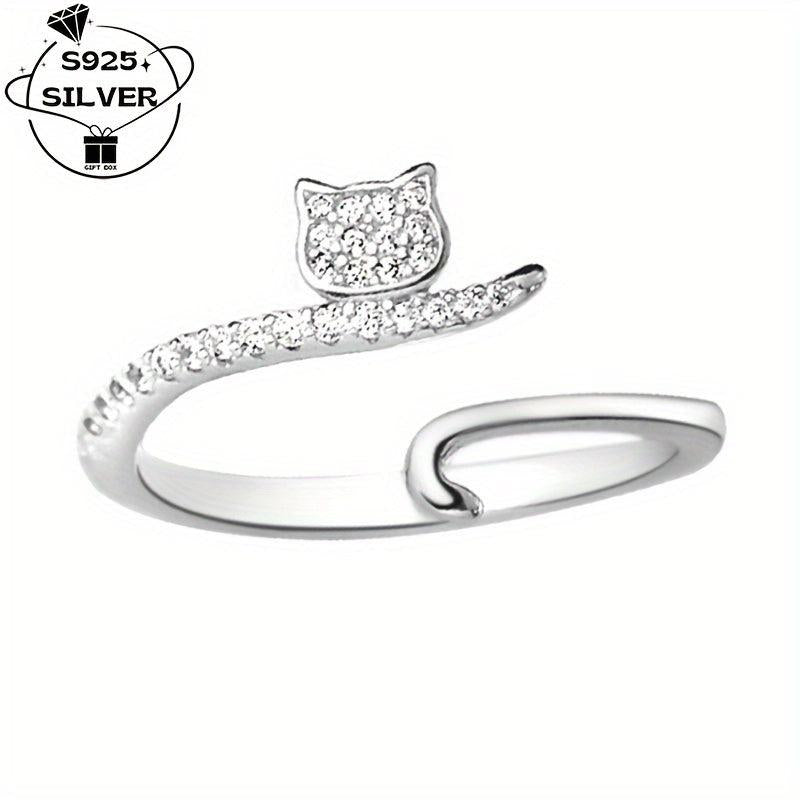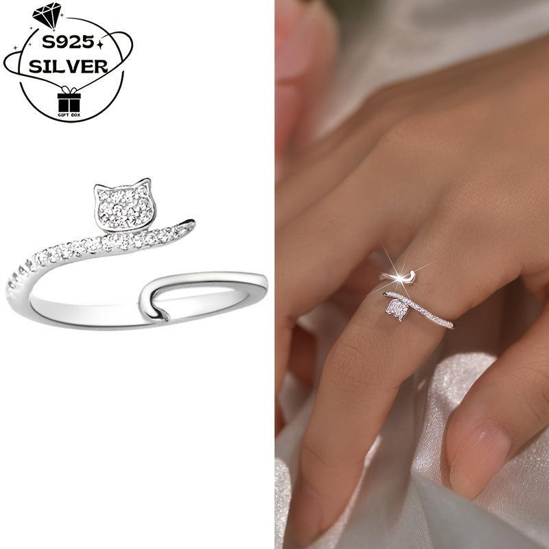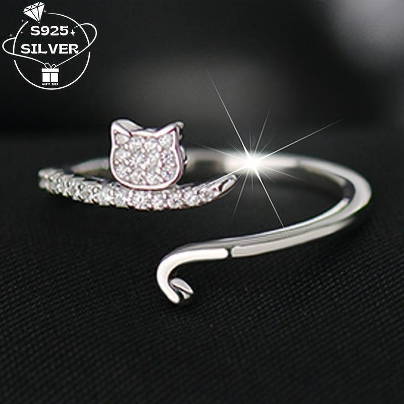 This adjustable ring features a cute cat design with sparkling synthetic zirconia, perfect for daily wear or parties.